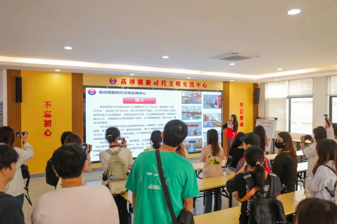 调研团队首先来到高埗镇新时代文明实践中心,通过听取介绍、参观学习等方式,详细了解中心在组织架构、项目培育、运营管理等方面的经验做法。师生们听得聚精会神,不时提出自己的疑问和想法,并拿出相机拍照记录。