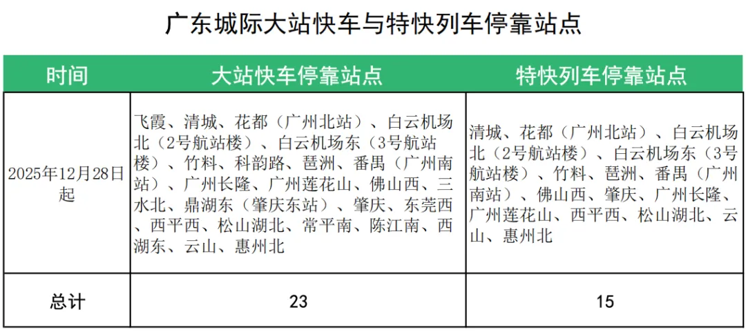 广东城际温馨提示:调图后部分车次时刻微调,市民出行前可通过“广东城际”公众号“城际出行助手”或12306查询最新时刻,提前规划行程,轻松出发。
