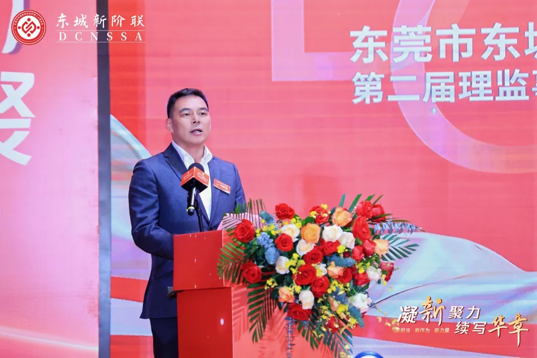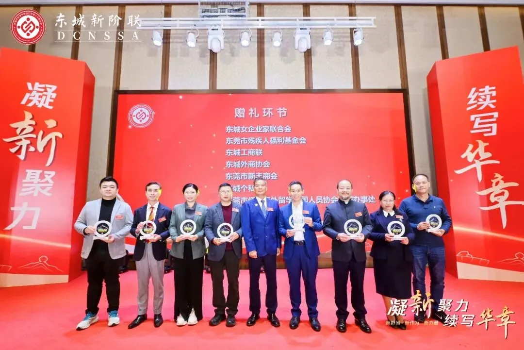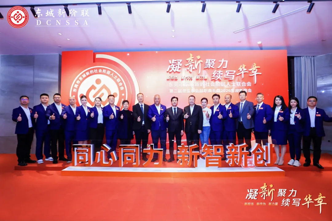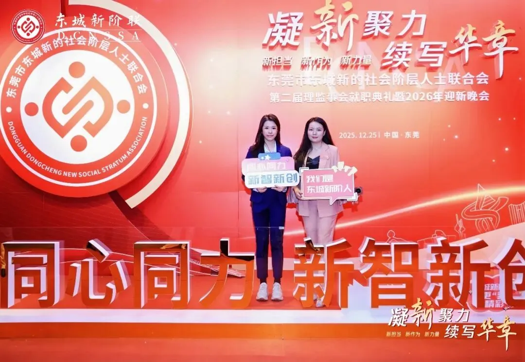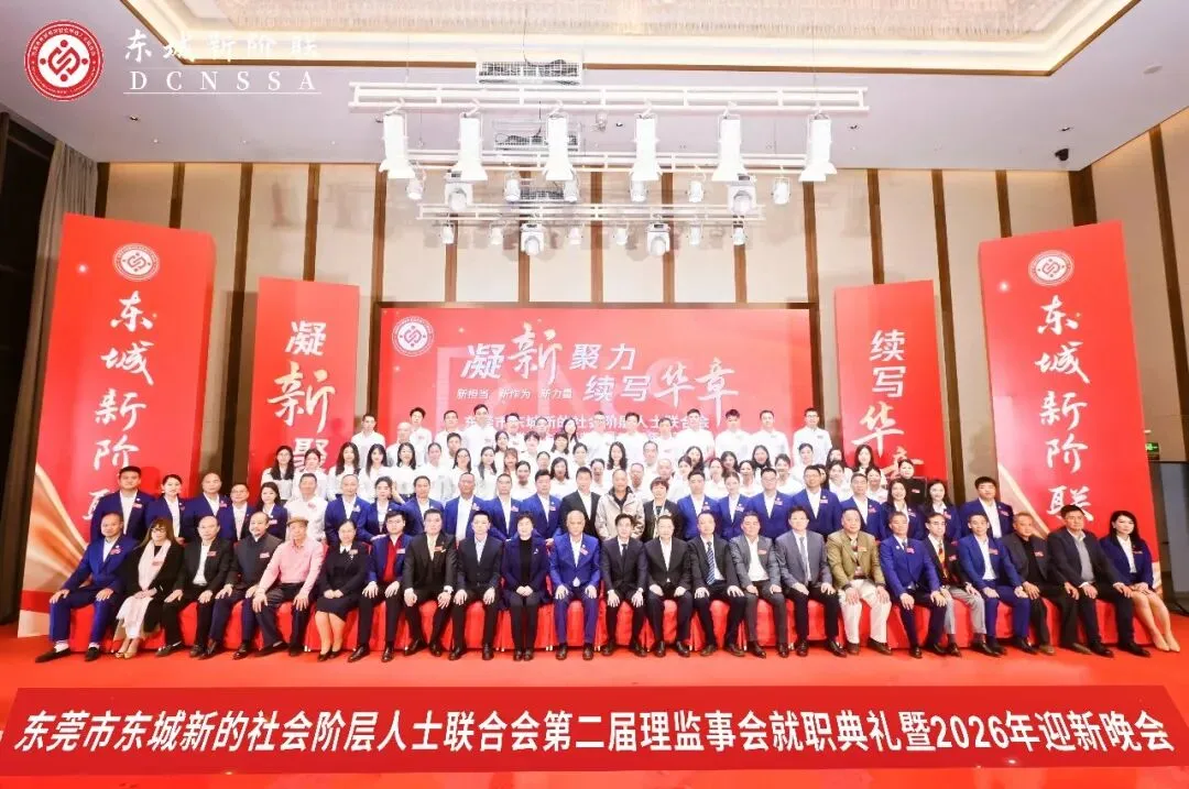 冬日阳光,暖意绵绵。2025年12月25日晚,东莞市东城新的社会阶层人士联合会(以下简称:“东城新阶联”)第二届理监事会就职典礼在东莞隆重举行,典礼以“凝新聚力,续写华章”为主题。东莞市委统战部相关负责同志、东城街道党工委书记黄桥法,东城街道党工委副书记、办事处主任陈东成,东城街道党工委委员叶爱青,东城街道办事处副主任温健锋等领导以及来自各镇阶新阶联、东城社会组织协会、新的社会阶层人士代表,共计300余人欢聚一堂,共同见证这一历史时刻,共话未来发展。标志着东城新阶联承前启后、继往开来,在发展进程中翻开崭新篇章,正式开启团结引领广大新的社会阶层人士,聚力服务东莞高质量发展的新征程。