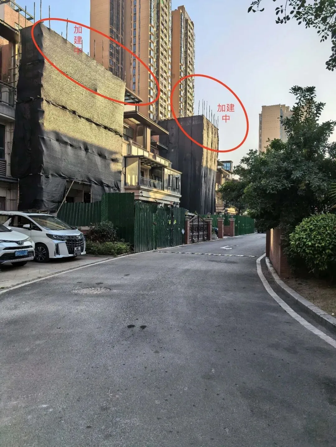 根据市民反映,黄江镇班芙春天小区的别墅楼顶普遍存在加建情况,不少业主在原有结构上加建一层甚至两层,形成大面积违法建设。投诉指出,小区内大量违建别墅多数已完成装修,且目前仍有部分正在施工。