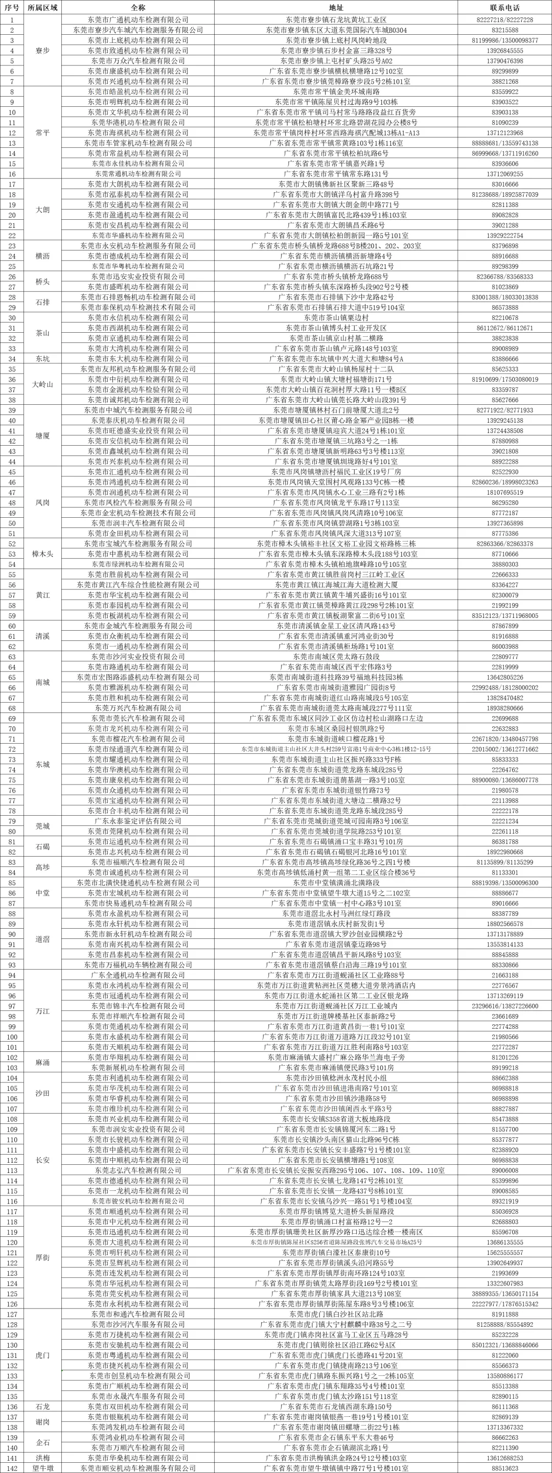 | 42 | 樟木头 | 樟木头东城营业所登记上牌点 | 东莞市樟木头镇柏地管理区帝御路3号 |
