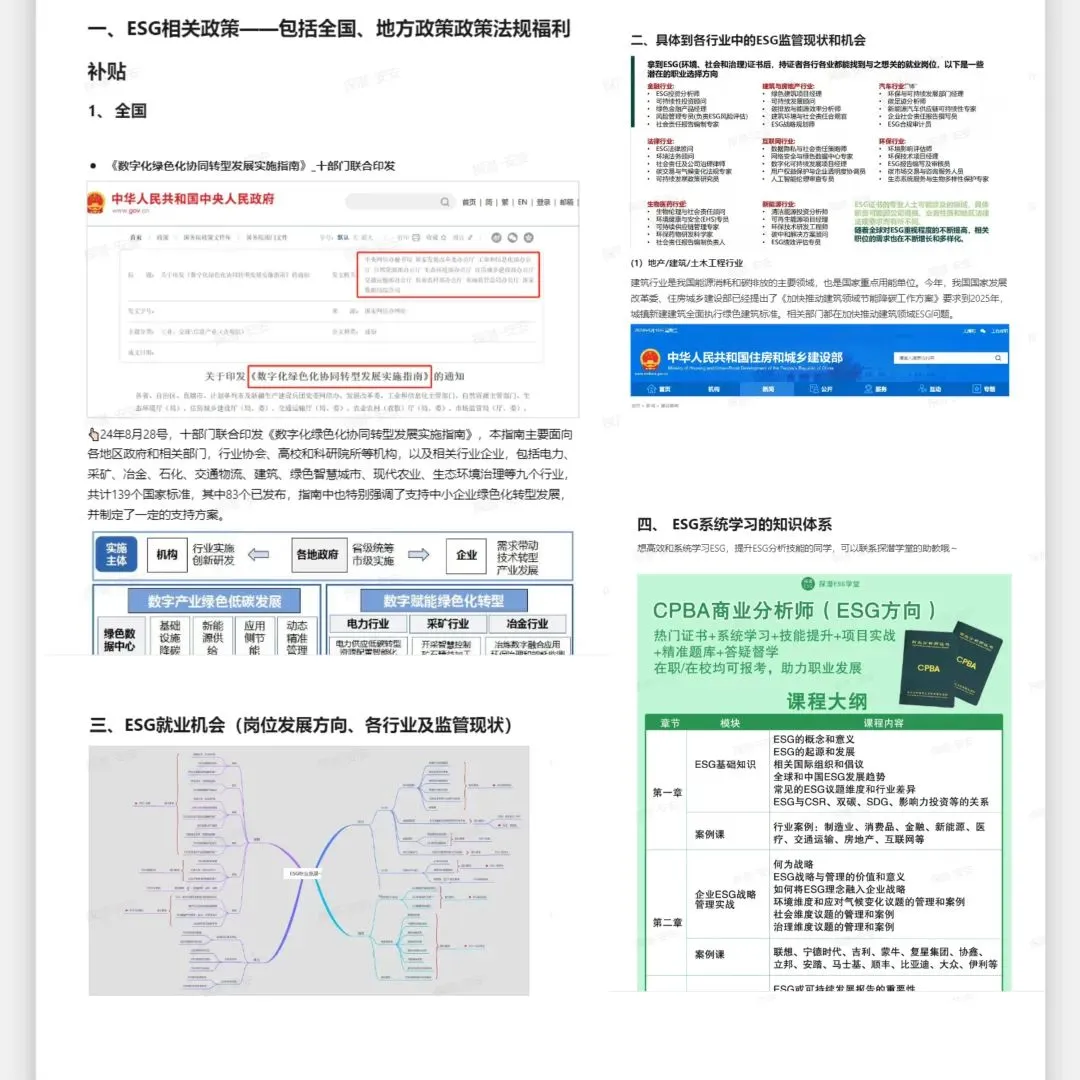 如今,ESG领域发展迅速,企业和上市公司对相关人才需求迫切,行业薪资待遇优厚。对于有意进入该领域的朋友来说,可以多多关注招聘简介里的岗位要求。通常,ESG人才需掌握多方面技能。比如:熟悉环境法规政策,紧跟时事,了解可持续发展的具体措施;具备ESG行业洞察力与学习能力;具备良好的沟通协调能力,能处理企业与各利益相关方的关系;有报告分析和报告撰写的能力,以准确呈现企业的ESG表现等等。为了帮助大家提升在ESG领域的竞争力,探潜学堂准备了ESG政策、行业、就业等最新信息,以及ESG行业重要报告,能够帮助大家高效关注行业动态,紧跟ESG领域的政策变化和发展趋势,提升分析报告等技能!感兴趣的朋友可以添加助教老师领取~