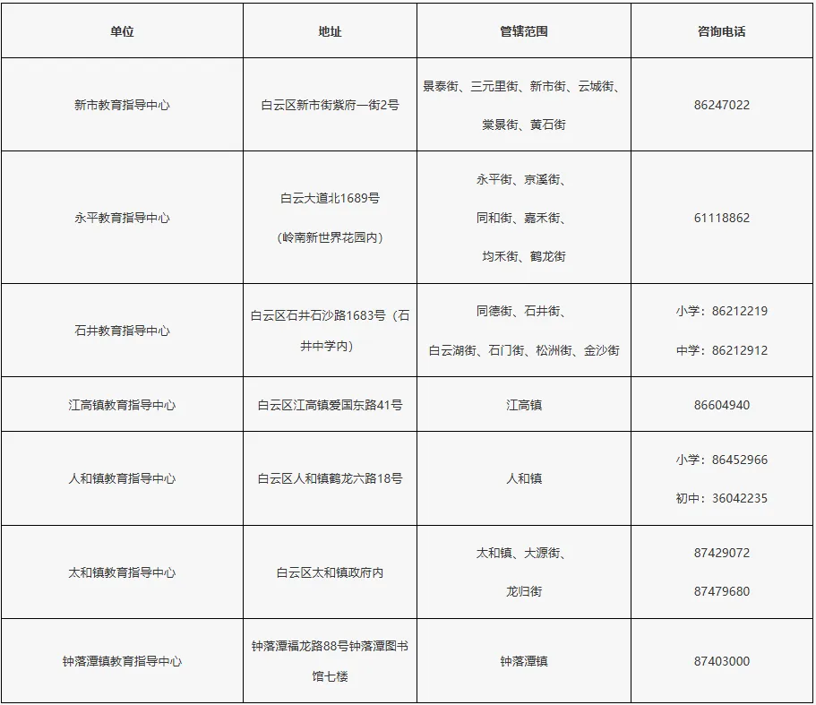 三、现将白云区招生工作咨询电话再次向社会公布,欢迎广大家长来电咨询。