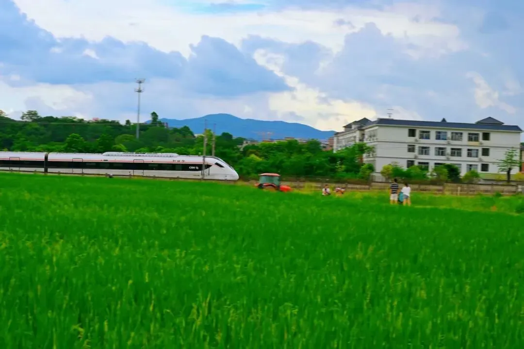 飞鸟、列车、稻浪、花海同框