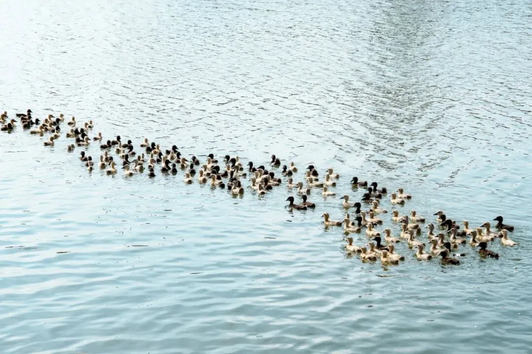 成群毛茸茸的小鸭子划水嬉戏