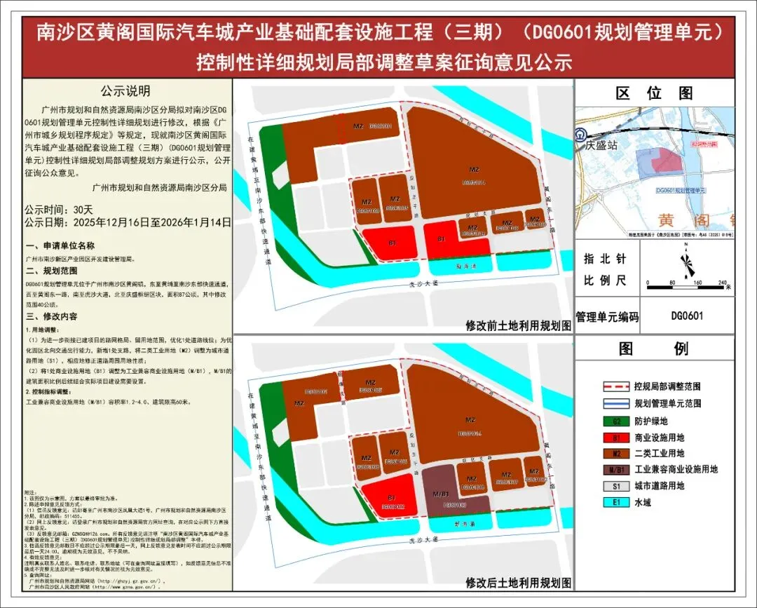 不难看出,本次控规调整聚焦黄阁国际汽车城产业发展核心诉求,通过优化交通配套、灵活调整用地功能,将进一步强化园区产业支撑能力,为汽车产业集群发展提供更完善的空间保障。