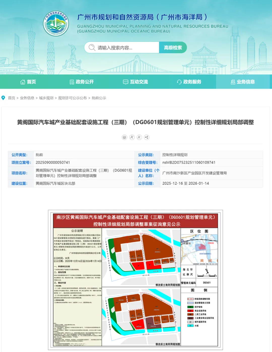 今年10月份,黄阁国际汽车城产业基础配套设施工程(一期)启动招标,拟新建2条道路、改造2条道路,总投资1.2亿元,其中有一条路就在此次调规区域。