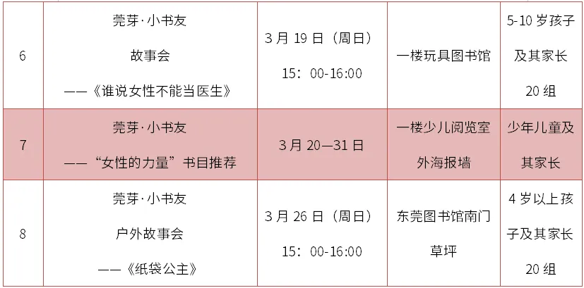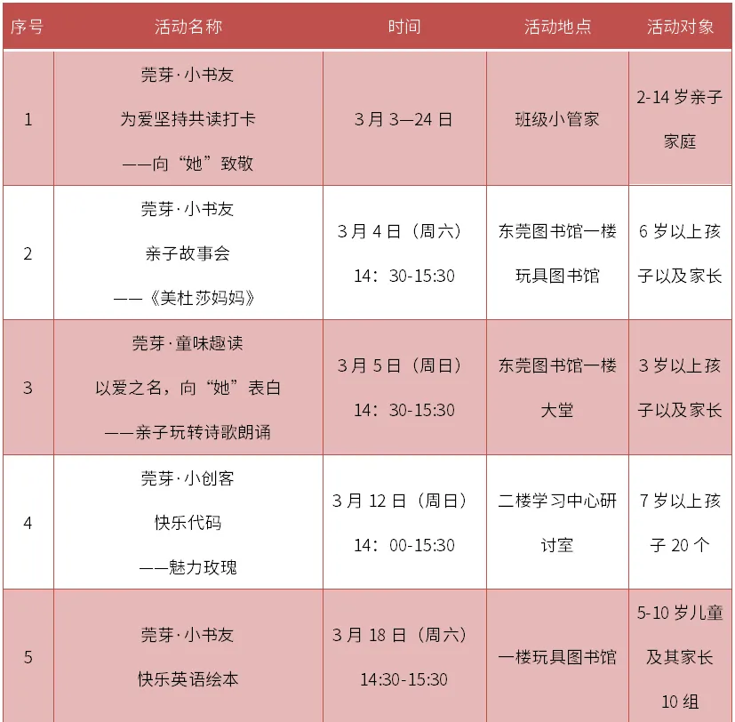 本周日(3月5日)下午,东莞图书馆携带着“书香玫瑰”,邀请各行各业的女神们一起享受一场春日里的悦读。各项活动详情如下: