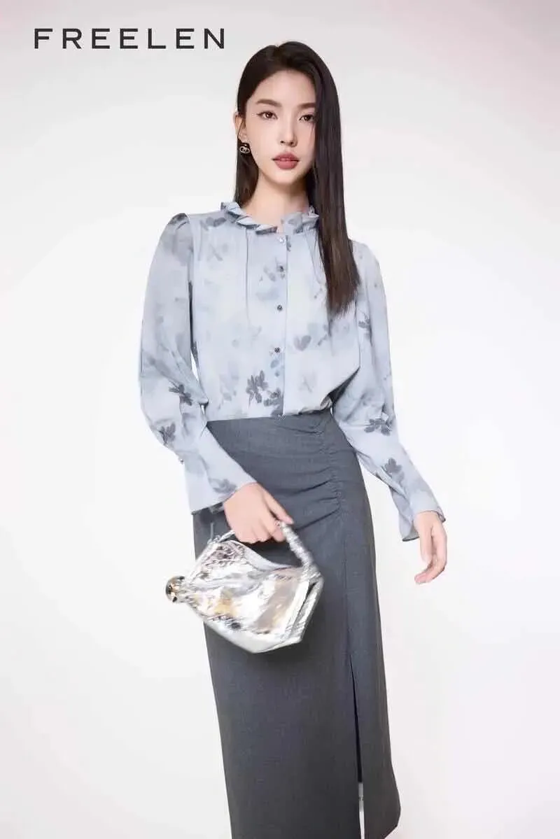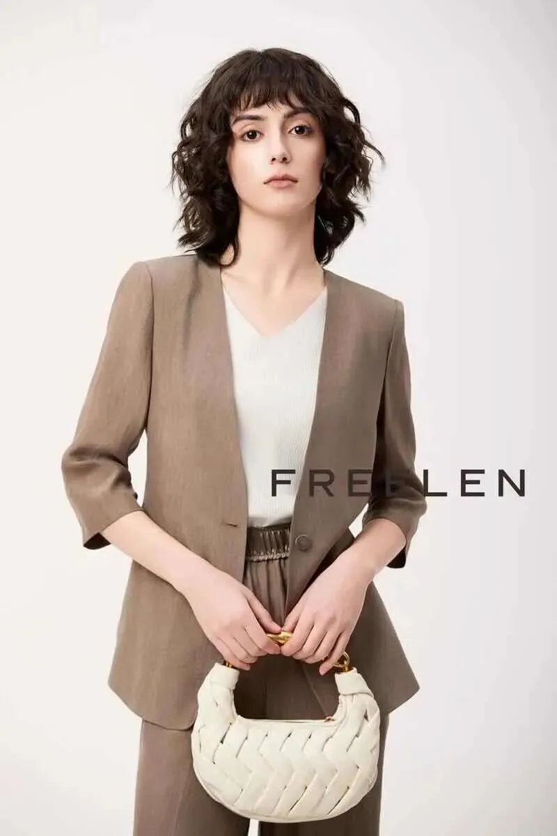 芝仪构建了覆盖全场景的穿搭体系,让知性女性在不同场合都能从容出彩。职场中,条纹羊毛西装搭配醋酸半裙,干练中透着女人味,成为会议与谈判的气场担当;通勤路上,米黄色针织衫配牛仔法棍裤,简约年轻又不失优雅;约会或聚会时,低饱和色系套装叠穿出层次感,国风元素吊带裙搭配轻薄罩衫,温柔浪漫又上镜;日常休闲则有棉麻衬衫与阔腿裤组合,透气舒适如行走的“小空调”,真正实现一衣多穿、百搭不重样。