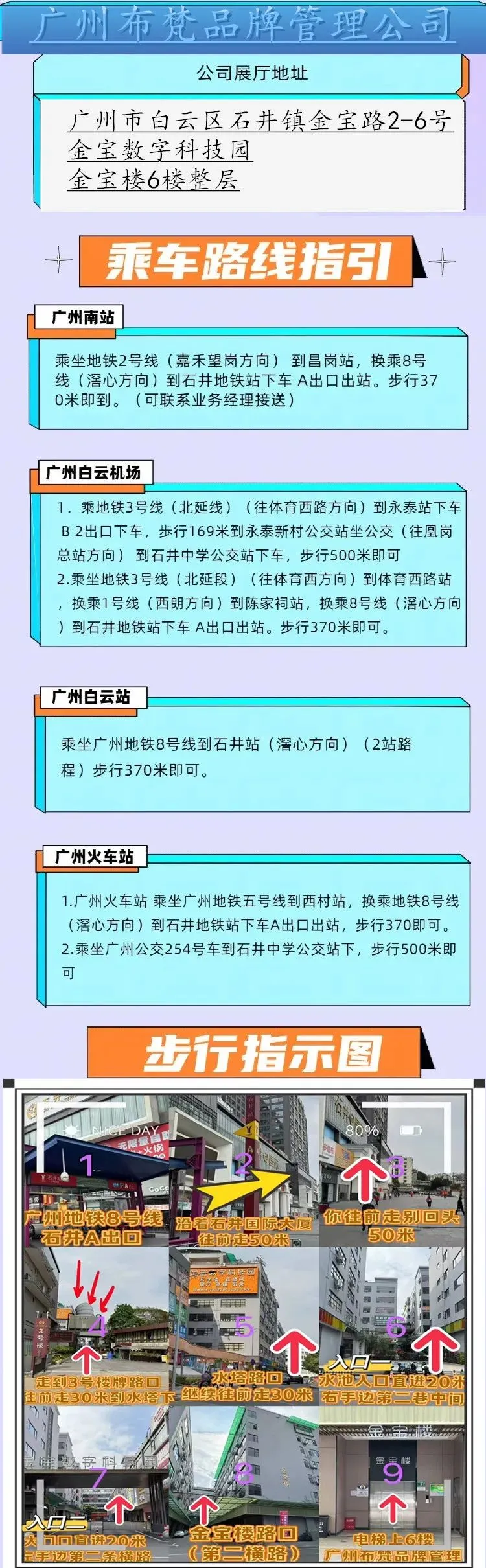 公司地址:广州市白云区石井金宝路服装中心金宝楼6楼本公司有3000平方米展厅仓库,常年有数十个广州、深圳、上海、杭州等地的知名女装品牌供应,欢迎前来公司参观考察,现场看货