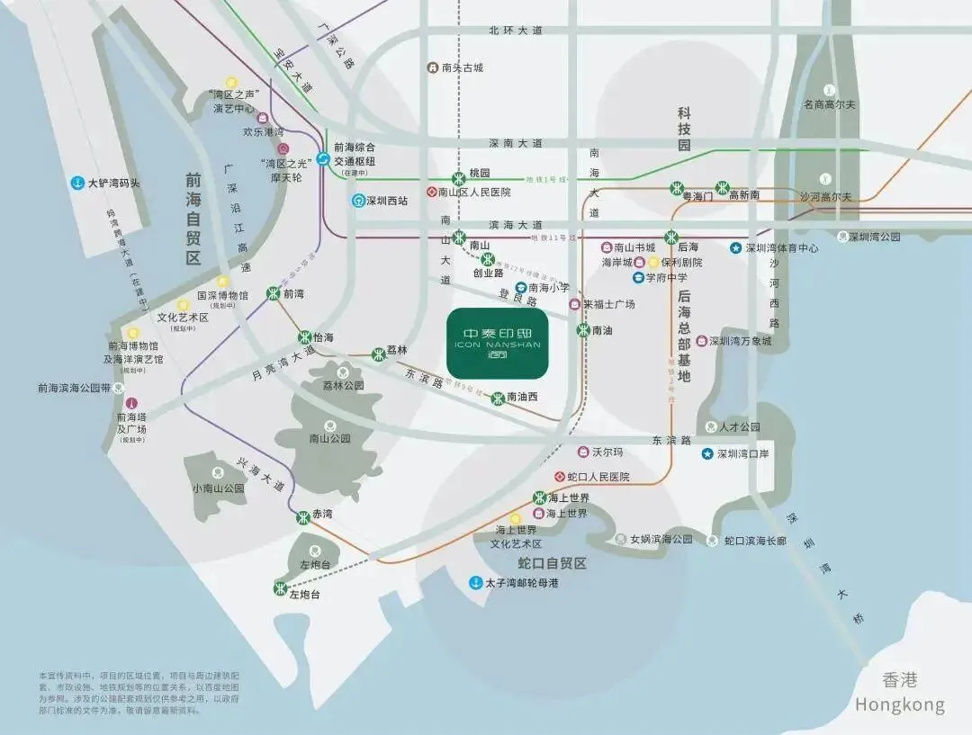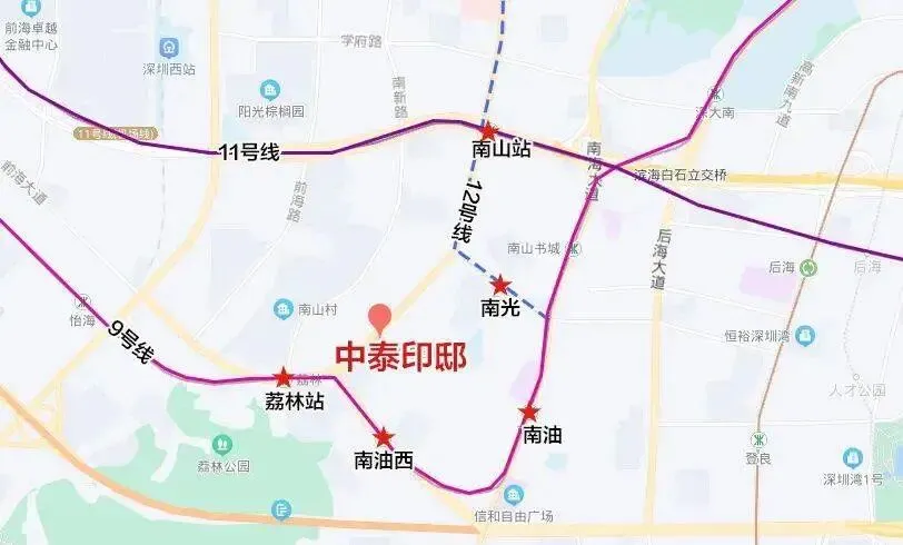 中泰·印邸坐落于深圳市南山区核心地段,具体位于南山大道1024号,地处南山大道东侧与登良路南侧的交汇处,属于南油板块的黄金位置。该区域作为南山发展成熟的居住与商业区,北接南山科技园,南邻蛇口自贸区,西望前海合作区,东连后海总部基地,地理位置得天独厚,既能享受成熟生活区的便利,又能坐拥三大核心产业区的发展红利。周边路网密集,紧邻南山大道、南海大道、东滨路等城市主干道,距离深圳湾超总基地、前海自贸区及蛇口中心均在15分钟车程内,同时靠近太子湾邮轮母港,轻松衔接港澳及海外航线,区位价值十分突出。
