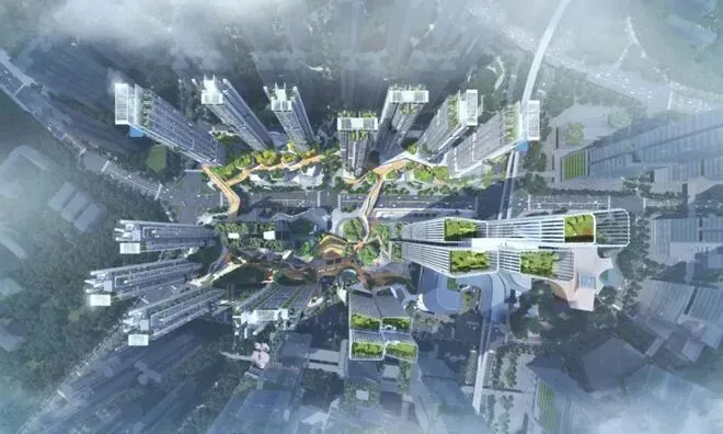项目北区做的是空中花园,1楼地面规划有公交首末站,公共充电站,二楼空中花园规划有地铁主题儿童乐园,会客厅;南区规划了1栋总高239米,1栋总高250米的写字楼超塔,还有2栋人才房,总共625套。