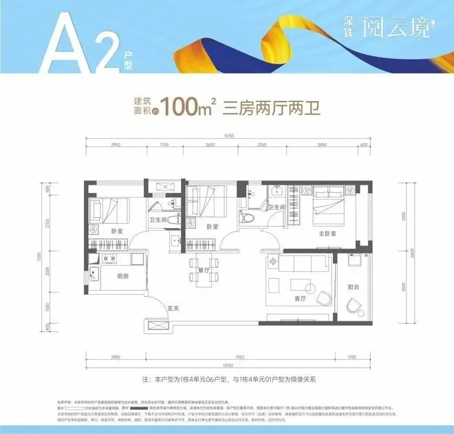 【建筑面积100㎡3房2卫】