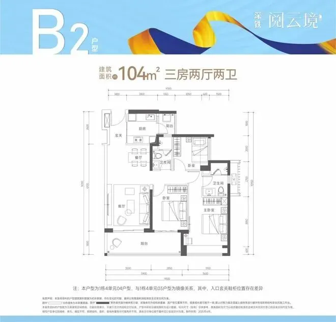 【建筑面积104㎡3房2卫】