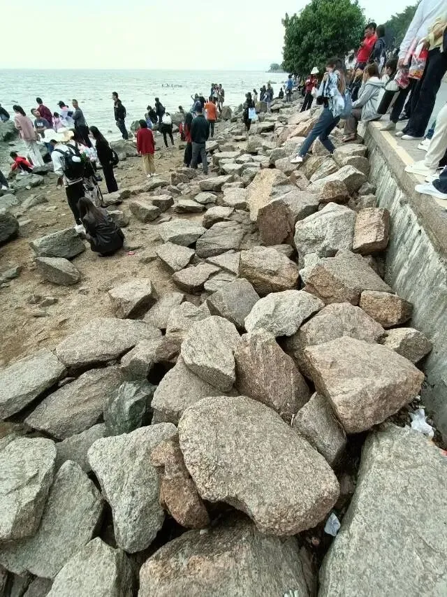 下滩涂时闹了笑话:一人多高的岸墙让我犯了难,五年级小朋友蹦上跳下着演示“下墙技巧”,我却盯着地面发怵。正犹豫时,身旁小青年扶着父亲稳稳落地,大哥回头笑着顺便也托了我一把:“别怕,我拉你!”道谢声消散在人潮里,这萍水相逢的暖意,竟比海风更温柔。