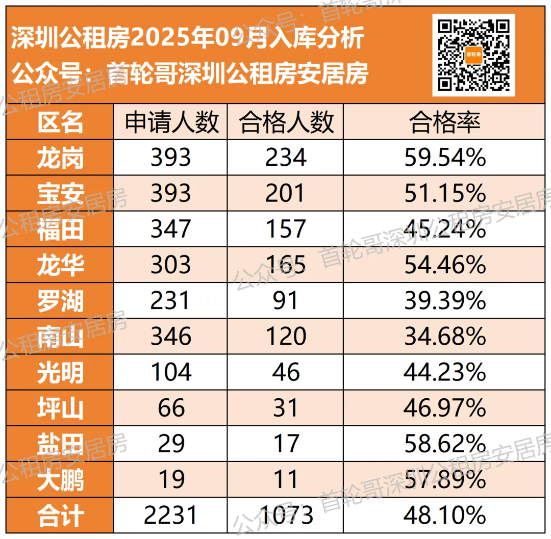 2025年9月提交公租房入库的家庭名单已经公布,10个区合计1073户合格家庭;