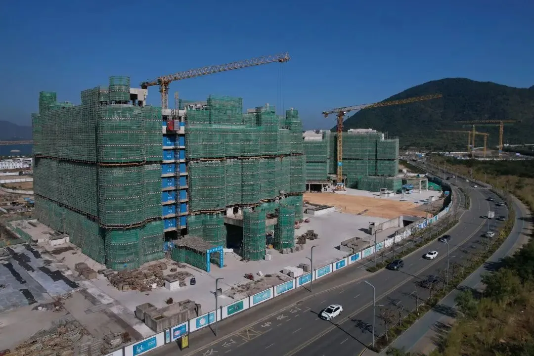 2025年12月,南都记者实地探访了深圳乐高乐园度假区项目。记者现场看到,施工现场有大型工程车辆频繁进出,现场也可以看到不少工人。酒店区域的路边,堆放了不少蓝色的构件,有工人正在现场指挥吊车吊起这些构件。主题乐园区域,从工地大门向内可以看到有大型机械正在进行作业,区域内的部分游乐设施也初见雏形。通过航拍画面可以看到,乐高乐园项目内建筑物已经形成规模,尤其是酒店区域,三大酒店均已封顶。