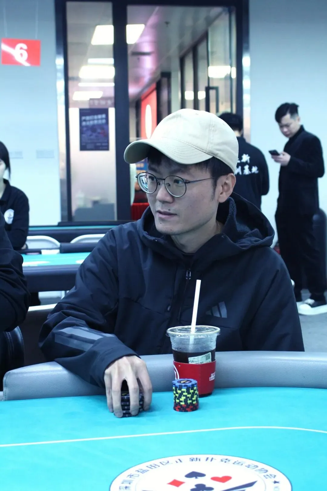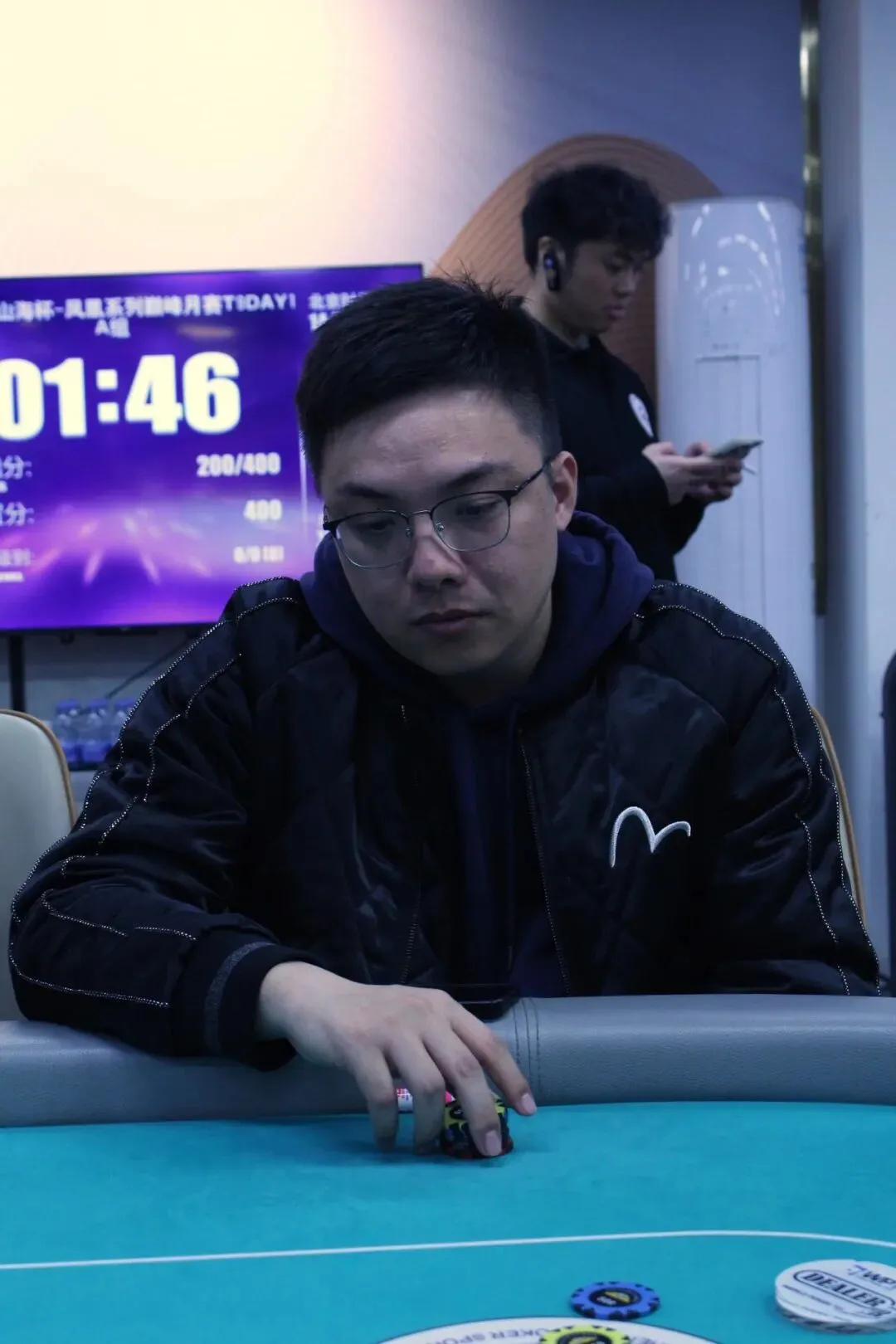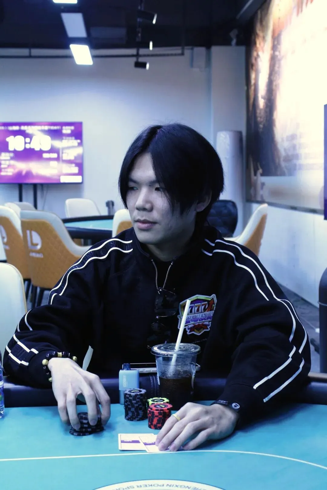River:9♥,过牌到Co位Bet20000,其余人都Fold,MP位亮出J♥J♣,CO位则是J♦8♥,CO位击中顺子,MP位选手成为了DAY1A组的泡沫,剩余15位选手晋级DAY2