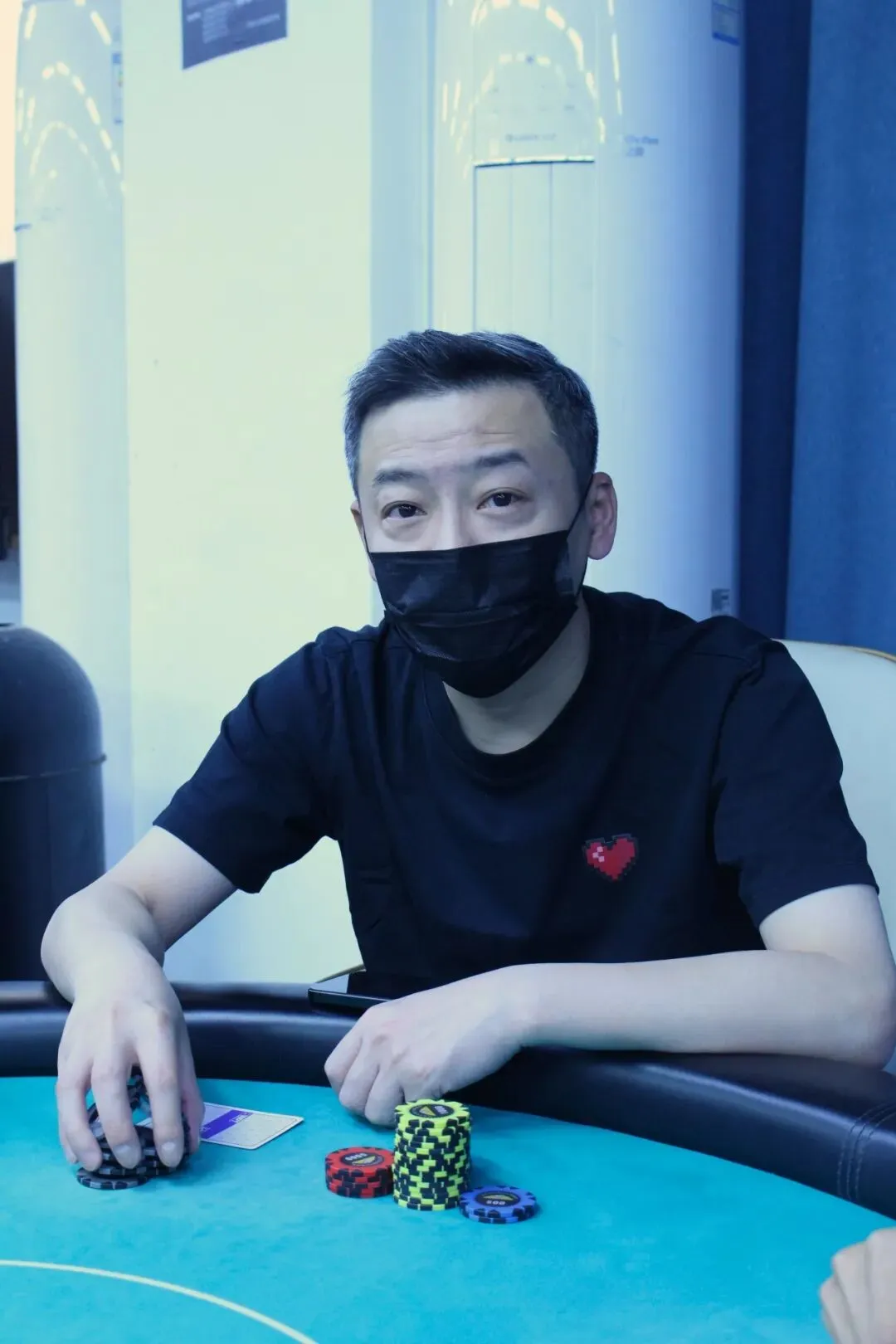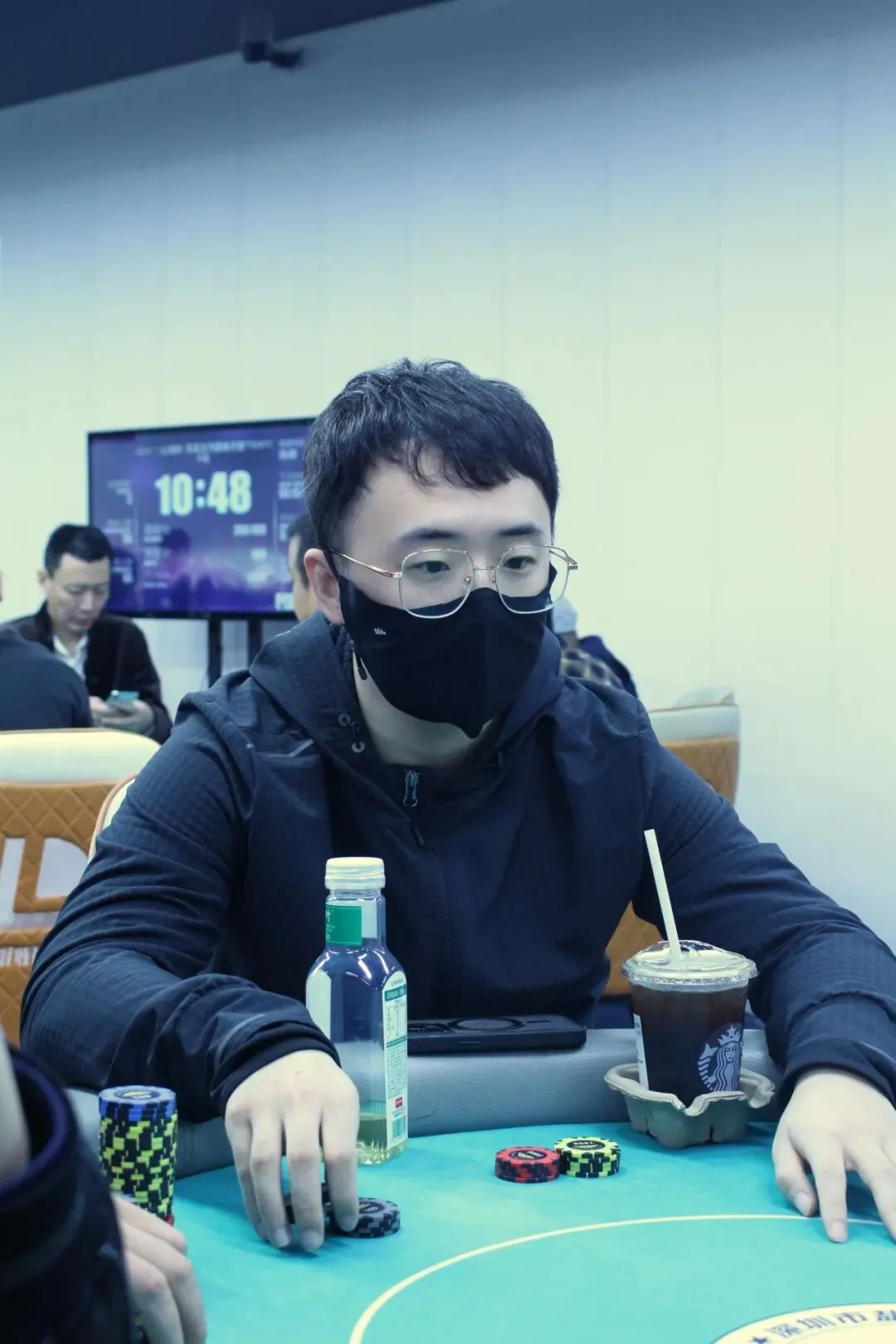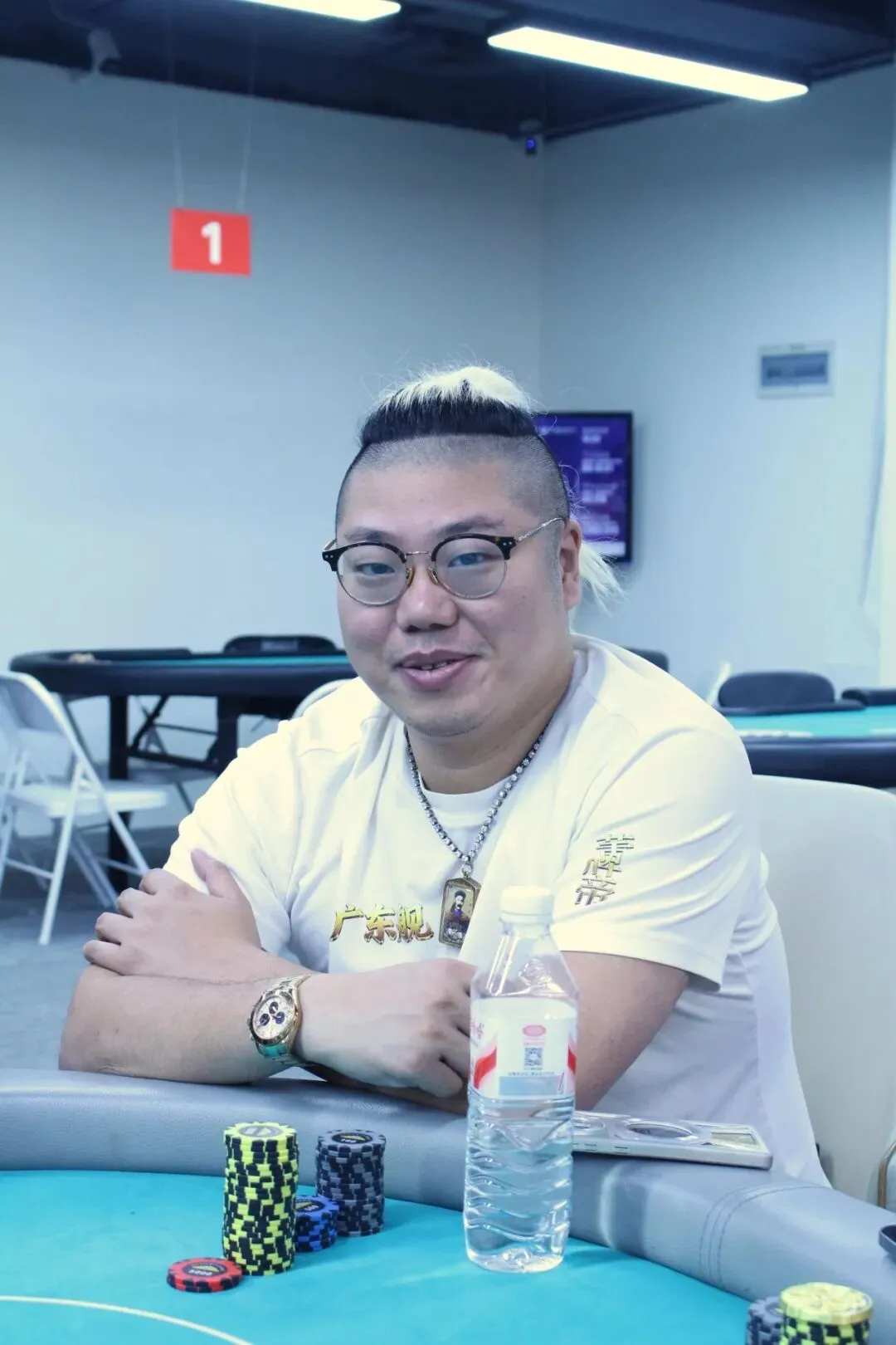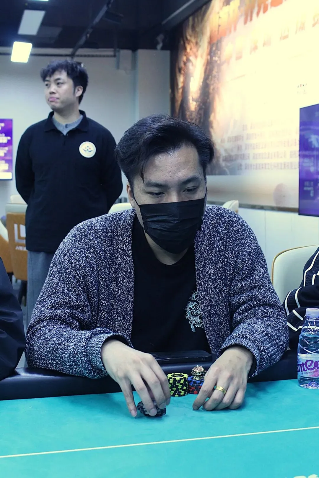 River:9♥,过牌到Co位Bet20000,其余人都Fold,MP位亮出J♥J♣,CO位则是J♦8♥,CO位击中顺子,MP位选手成为了DAY1A组的泡沫,剩余15位选手晋级DAY2