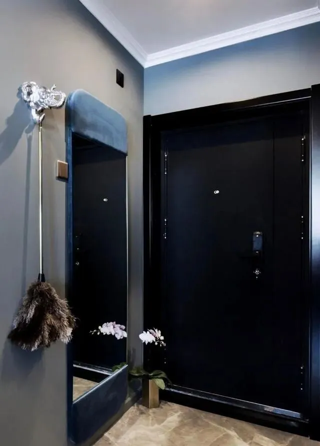 墙上挂了天鹅绒穿衣镜 , 立马就有了异域风情 , 进门换鞋的时候顺便照照 , 很方便。