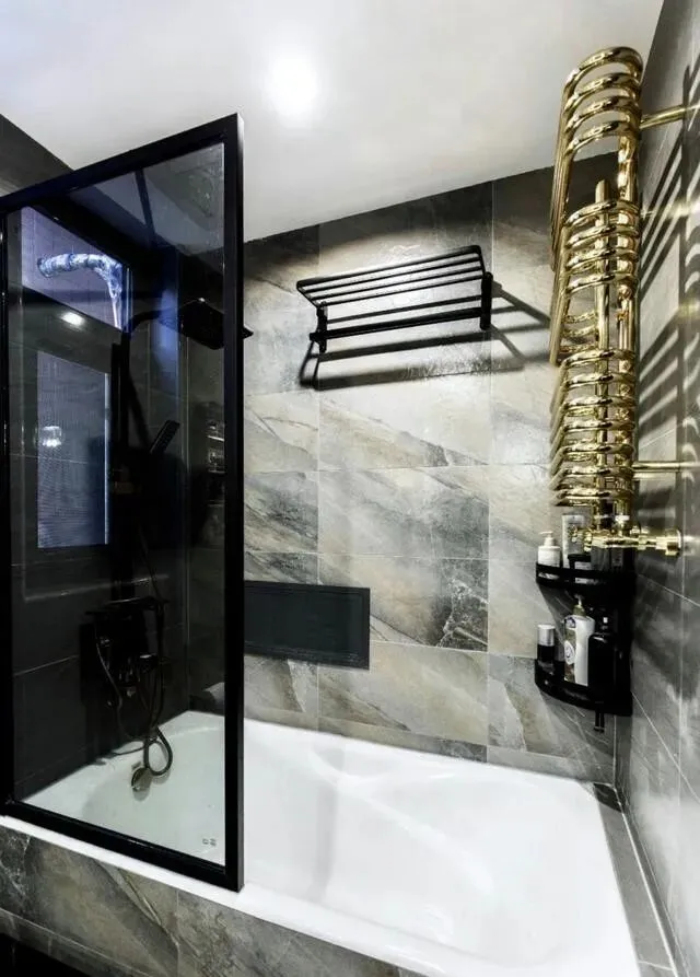 卫生间专门塞进一个大浴缸 , 忙碌一天回家能泡个澡 , 这才是生活啊。