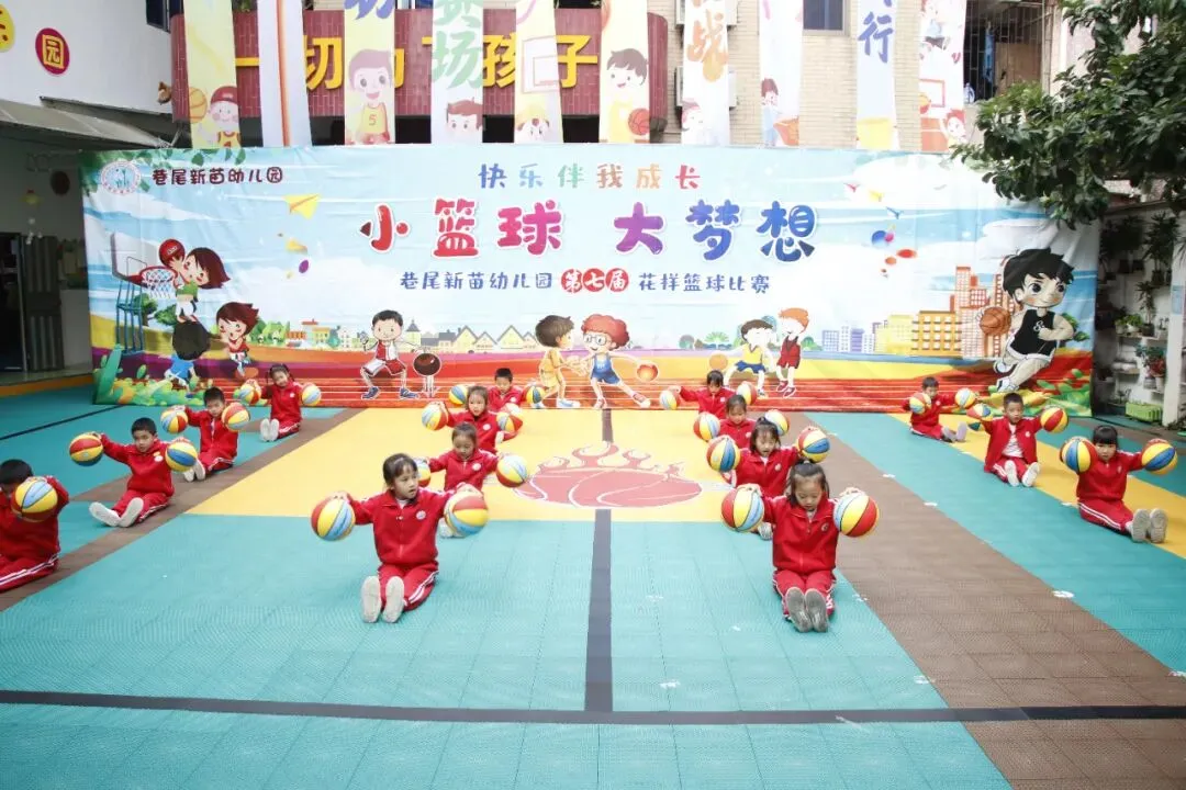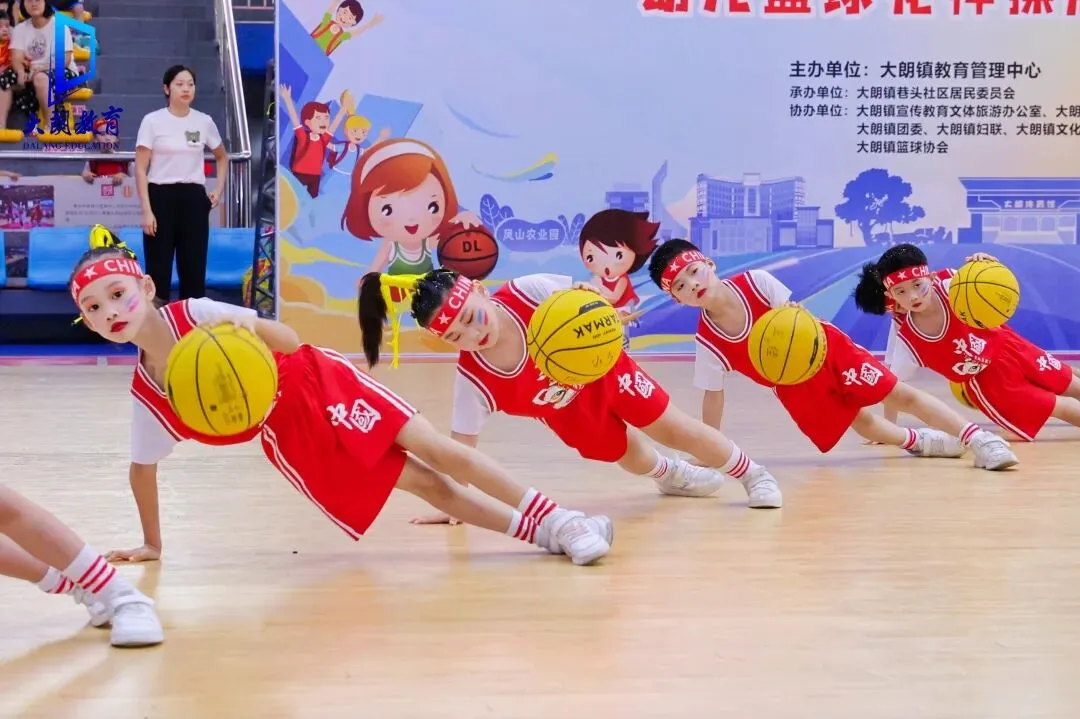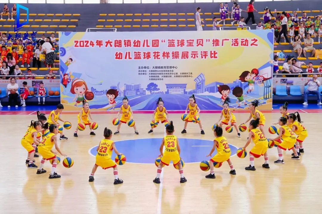 如今,篮球运动已成为大朗镇幼儿园的“标配”课程——全镇100%的幼儿园均开设篮球专项体能课,并衍生出篮球早操、篮球社团、亲子篮球友谊赛等丰富活动形式。数据显示,每年参与系统化篮球训练的幼儿超 5000人次。其中,新苗幼儿园的花式篮球表演成果尤为亮眼:不仅在 2024 年大朗镇 “篮球宝贝” 推广活动之幼儿篮球花样操展示评比中斩获特等奖,更连续三年在东莞市幼儿运动能力展示大赛中蝉联一等奖,尽显大朗幼儿篮球教育的扎实成效。