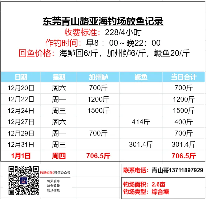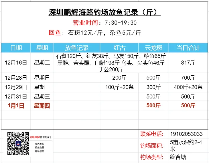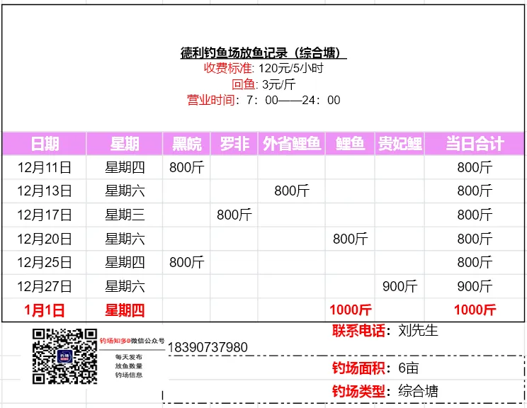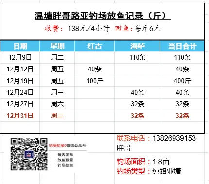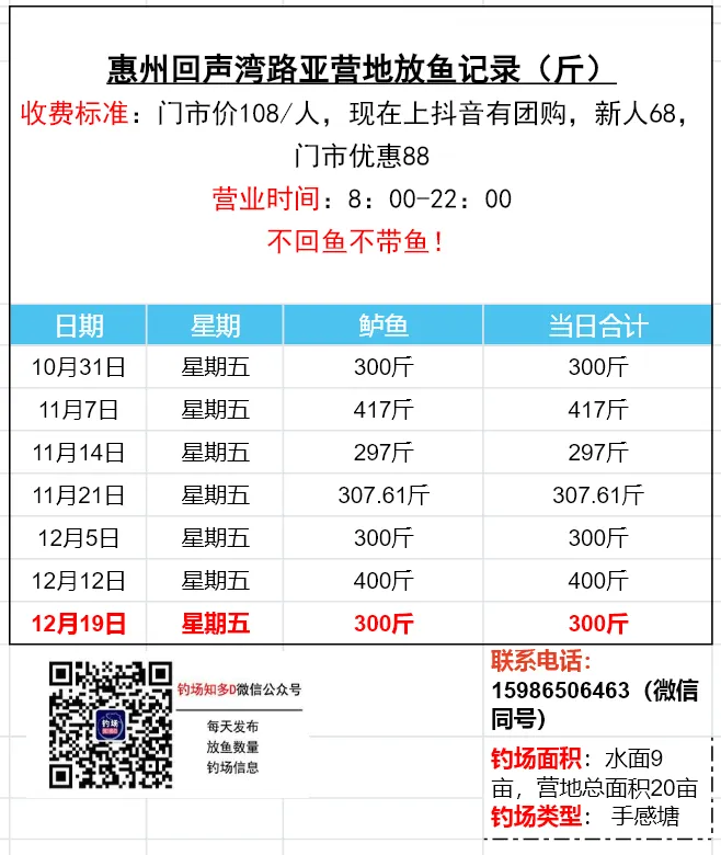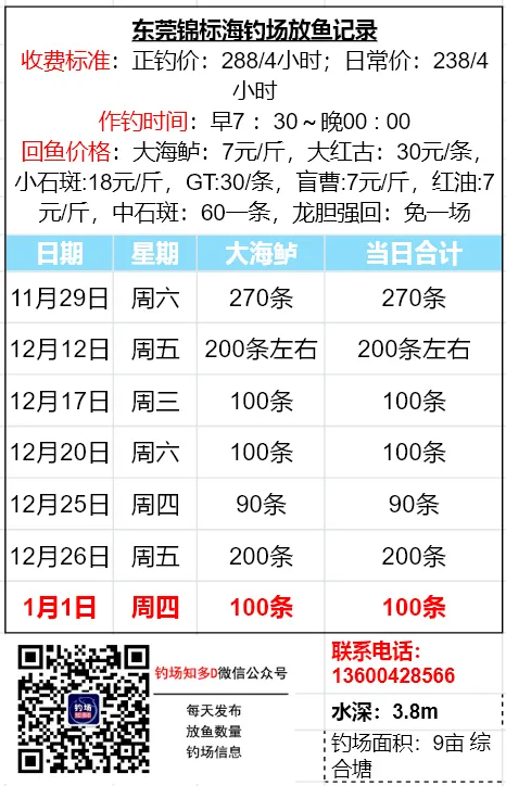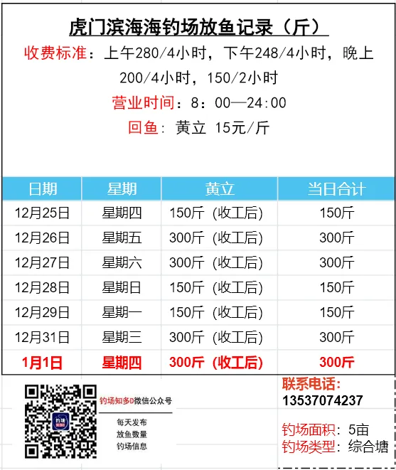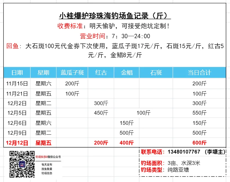 数据来源于钓场老板,未经现场核实!
