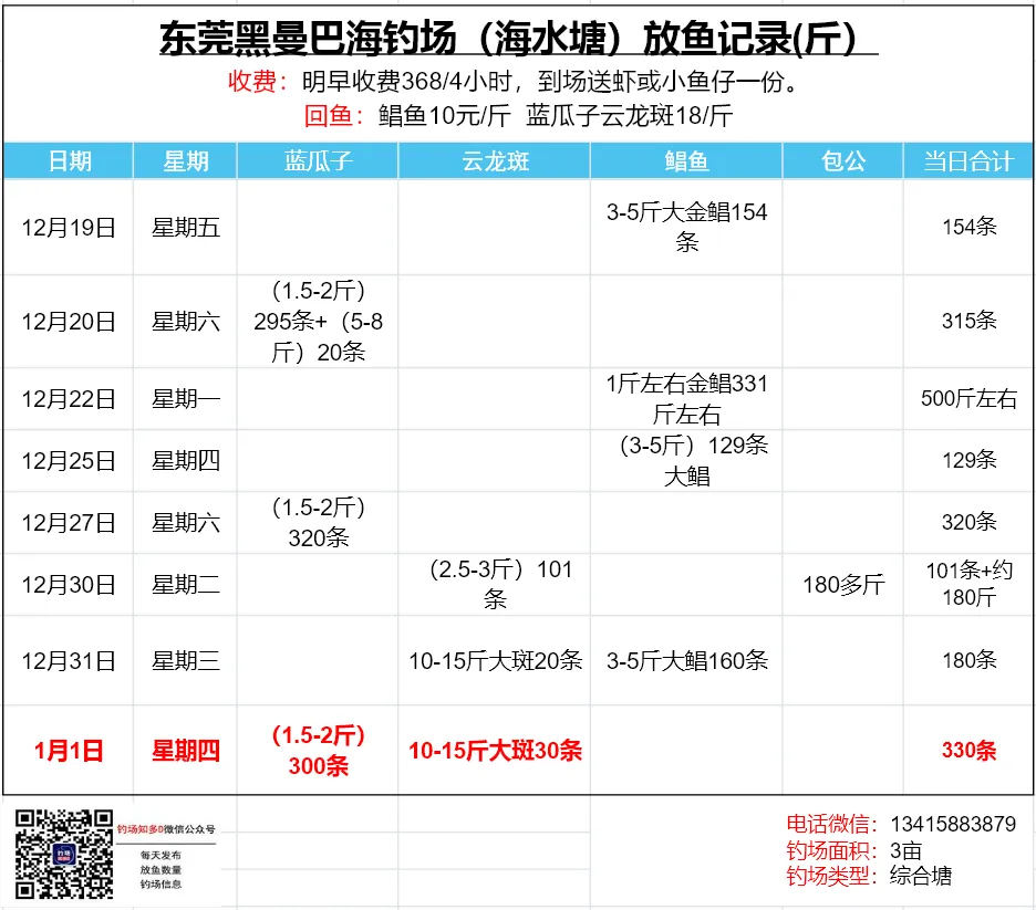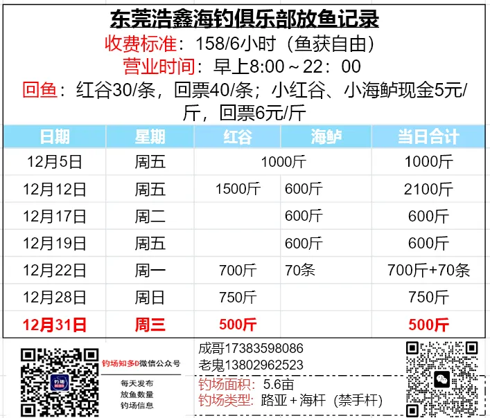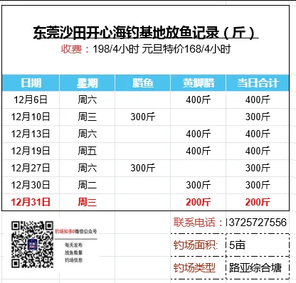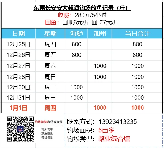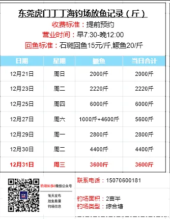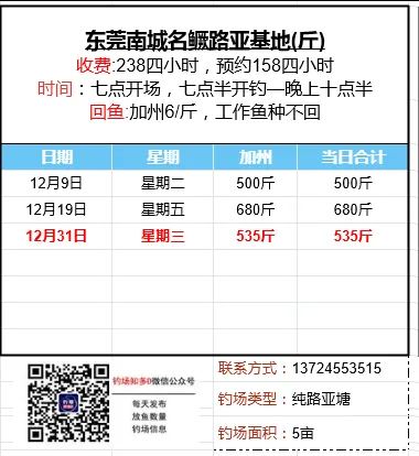 本文收录东莞地区比较知名和靠谱的钓场放鱼数据