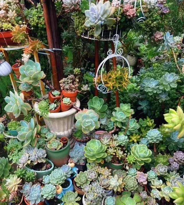 她还弄了个架子 , 把多肉分层养。