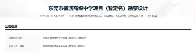 广东省公共资源交易平台披露的信息显示,暂定名“横沥高级中学”的项目已进入勘察设计阶段。