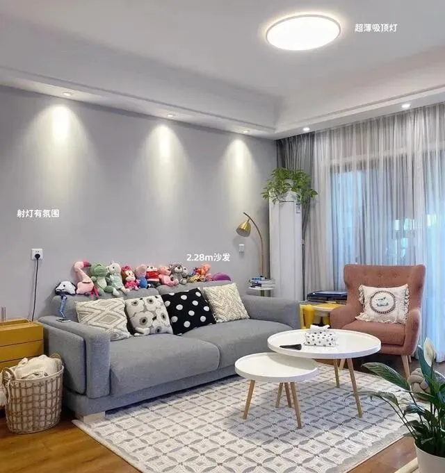 主灯用的超薄吸顶灯 , 不压层高 , 光线也够用 , 这个选择真的很聪明 , 尤其是小户型 , 千万别搞那些复杂的灯具。