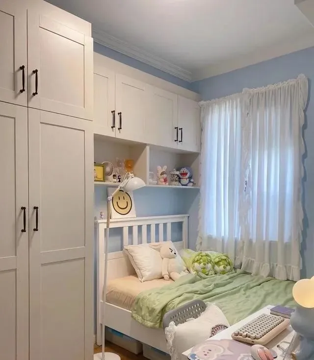 儿童房面积不大 , 但收纳做得很足。