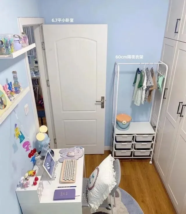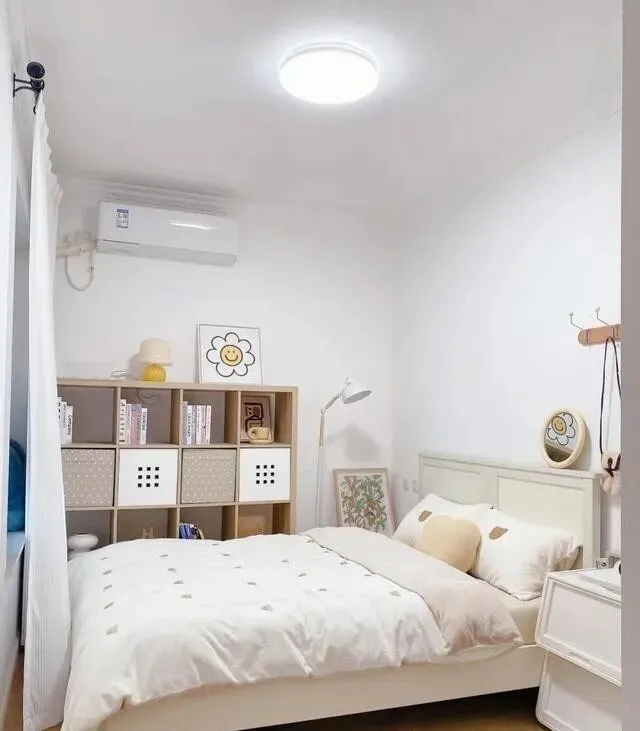 床是榻榻米带抽屉的那种 , 下面能放换季衣服或者玩具 , 空间一点没浪费。