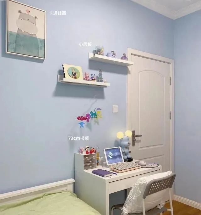 房间就放了床和书桌 , 简简单单 , 反而显得宽敞 , 书桌靠窗 , 光线好 , 写作业眼睛不累。