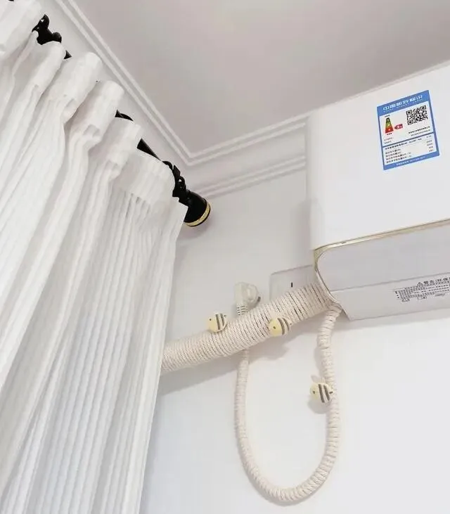 有个特别有意思的细节 , 空调管线用麻绳缠起来了 , 不突兀 , 还挺好看的 , 装饰感拉满。