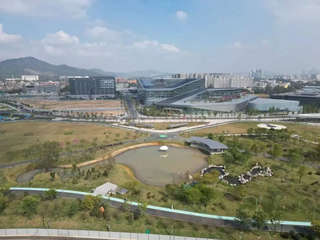 公园以“科技芯 无限环”为主体,融入海绵城市与低碳生态理念,通过绿美生态布局,将北侧的高端产业园,西部的大观净水厂以及蜿蜒的车陂涌碧道紧密串联,打造一座服务于广大市民与产业人才的无限公园。