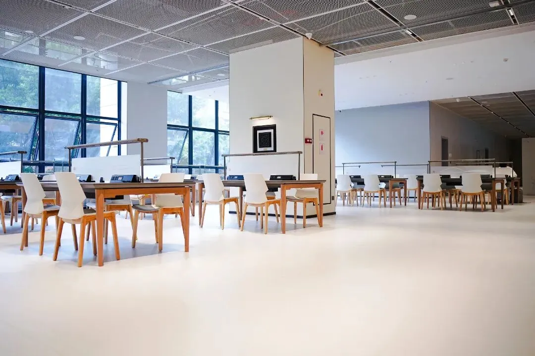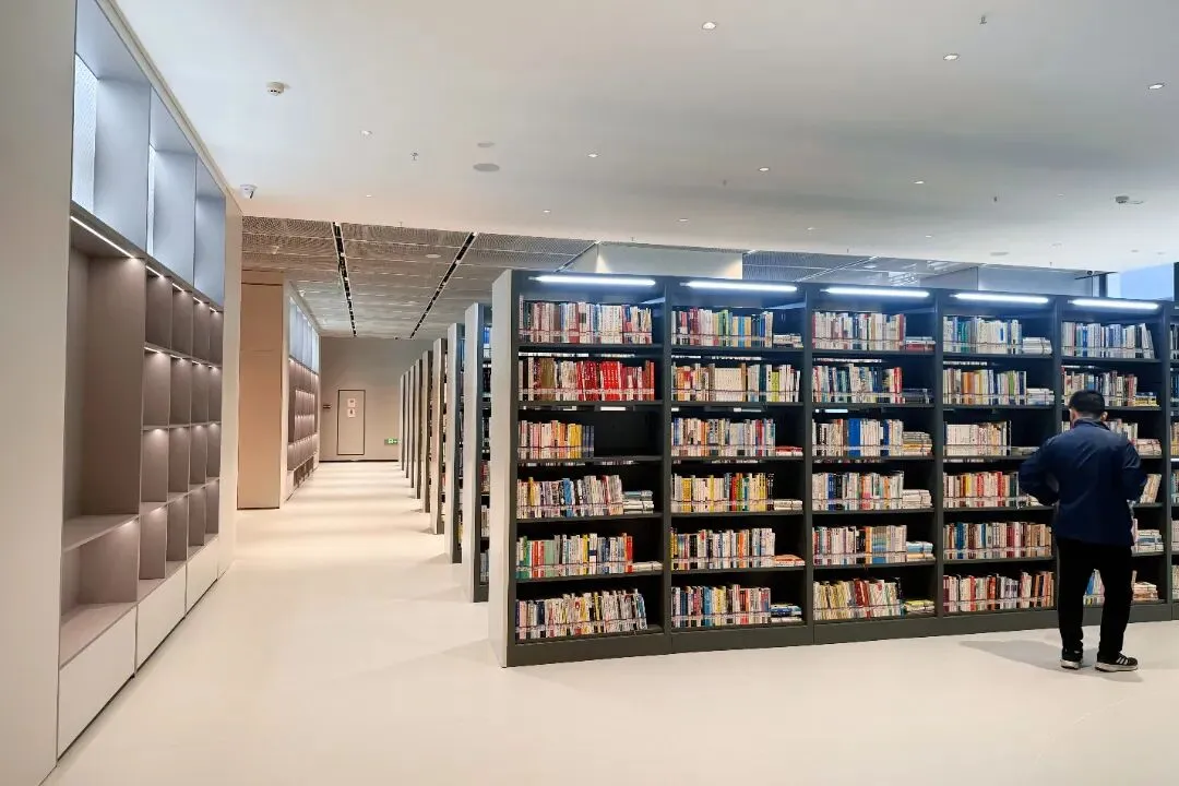 海珠区图书馆新馆共三层,依据功能分区,一层为图书馆大厅,设有服务台、展示区、多功能展廊等;二层为主要的开架藏书和阅读区;三层为办公区、少儿阅读区、共享学习室等。