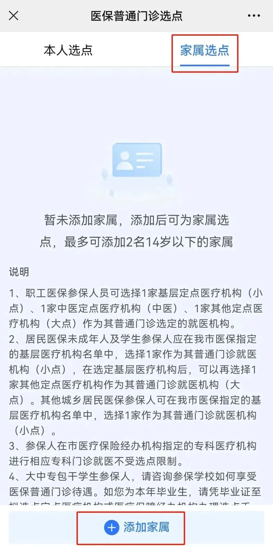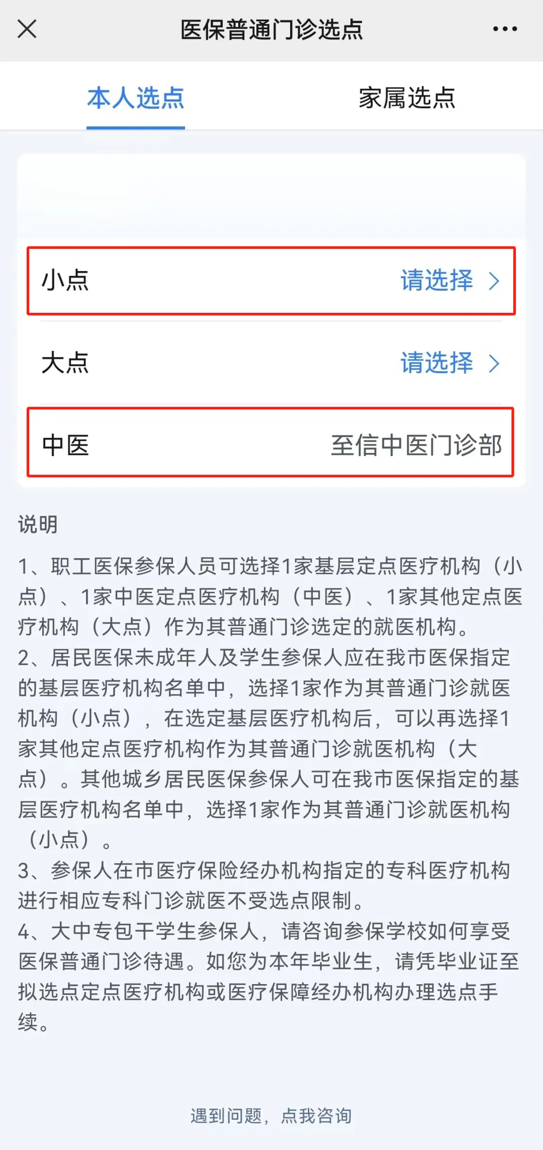 2.参加居民医保的未成年人及在校学生普通门诊可选择1家基层定点医疗机构(小点)、1家其他定点医疗机构(大点)作为本人选定的就医机构;参加居民医保的其他城乡居民普通门诊可选择1家基层定点医疗机构(小点)作为本人选定的就医机构。