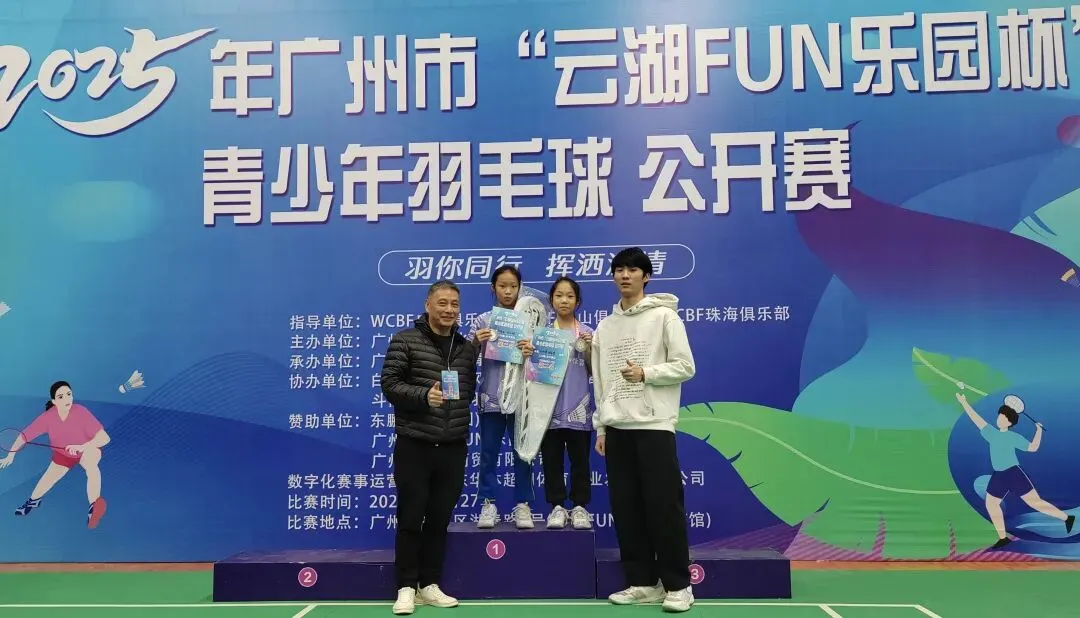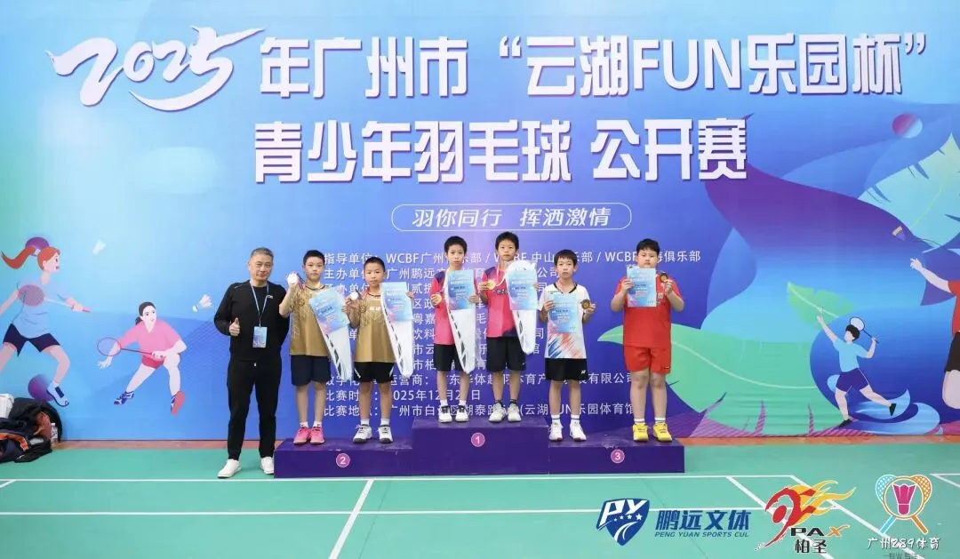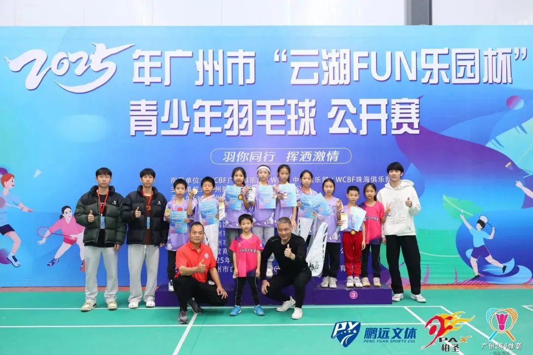 高级羽毛球教练员万泉伸荣任广州青少年培训基地主管教练,年终前带队广州289体育青少年羽毛球训练基地运动员参加2025年广州市“云湖FUN乐园杯”青少年羽毛球公开赛获得奖项: