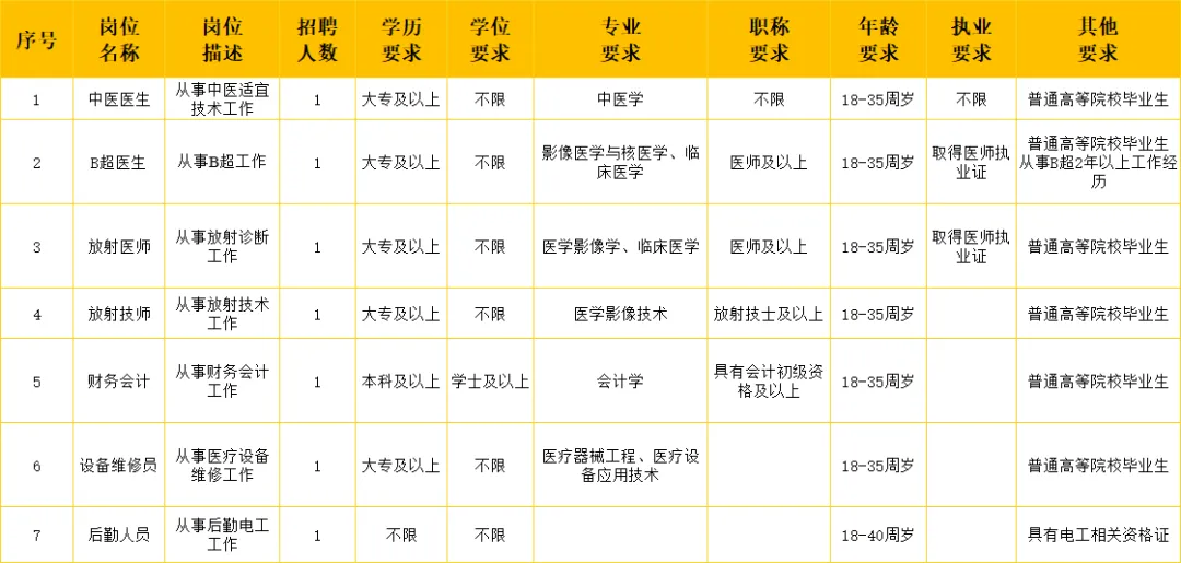 (二)招聘岗位及数量:专业技术岗位6名、后勤岗位1名。