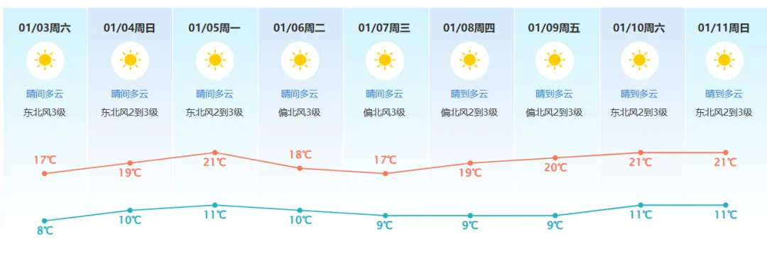 展望9—11日以晴到多云为主。