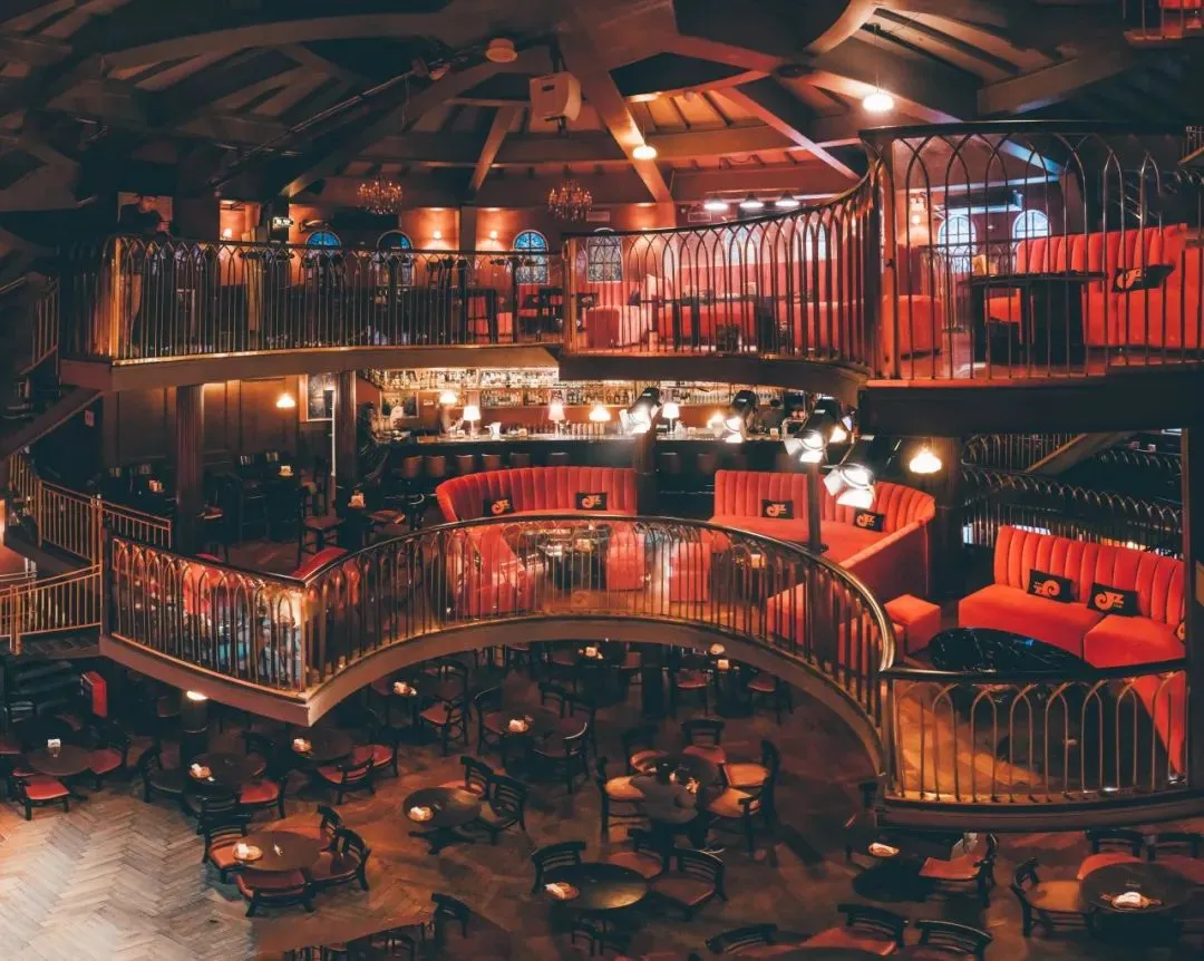 JZ Club 共设三层观演与社交空间,围绕中央舞台呈环状布局,结构错落有致、视野通透。全场共284个座席,配有前厅、卡座、散座等不同区域,便于自由组合。二、三楼独立吧台可满足分区服务需求,整体空间既可举办中小型演出、主题派对,也适配品牌发布、私宴庆典等多种场景。