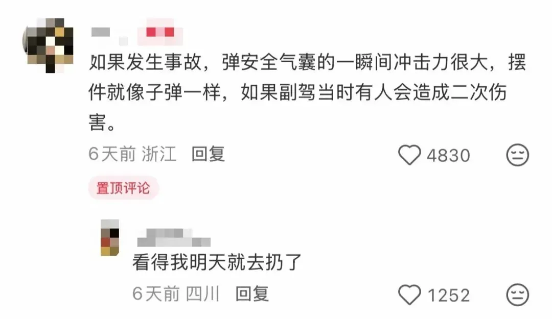 中控台尽量不要放置大型摆件,如果遇到突发情况需要紧急制动或遇到交通事故,这些车内摆件可能会对前排乘坐的人造成二次伤害。