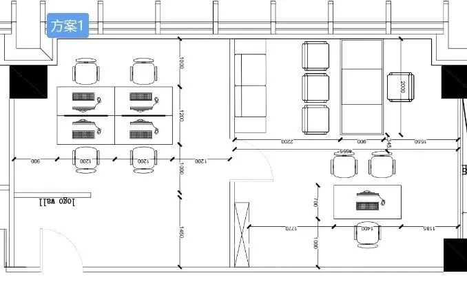现状布局:3个隔间+24个工位+茶水间