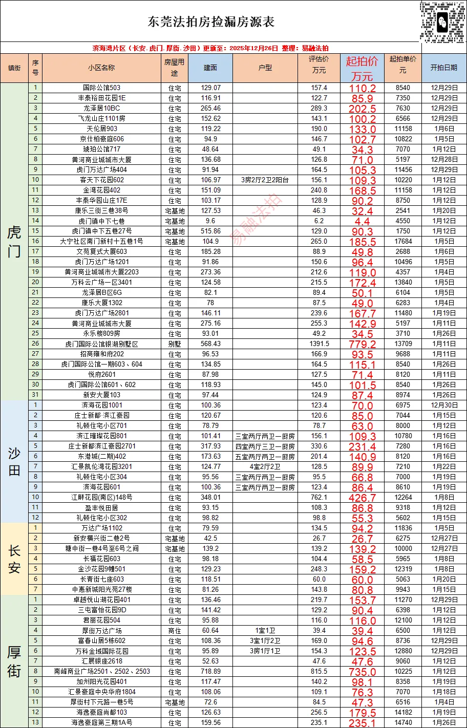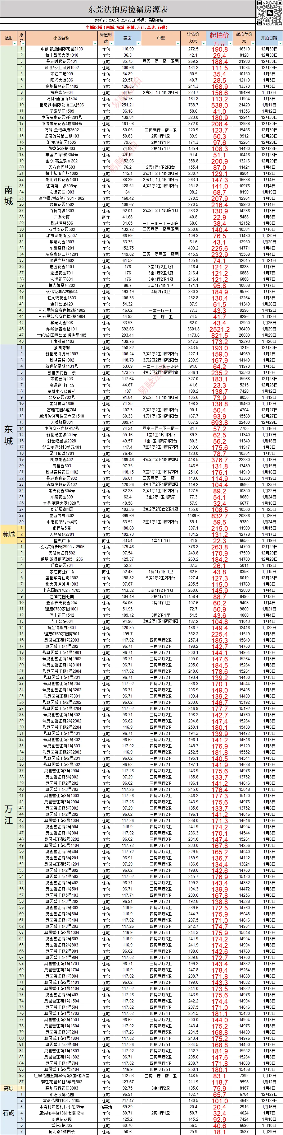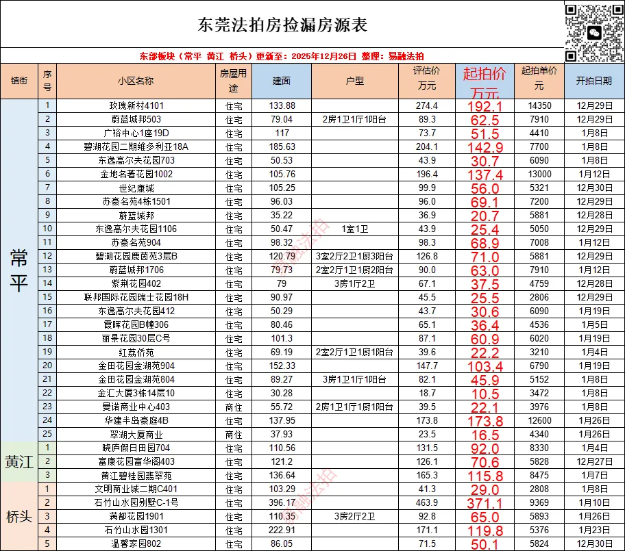 东莞12月法拍房源情况(住宅)