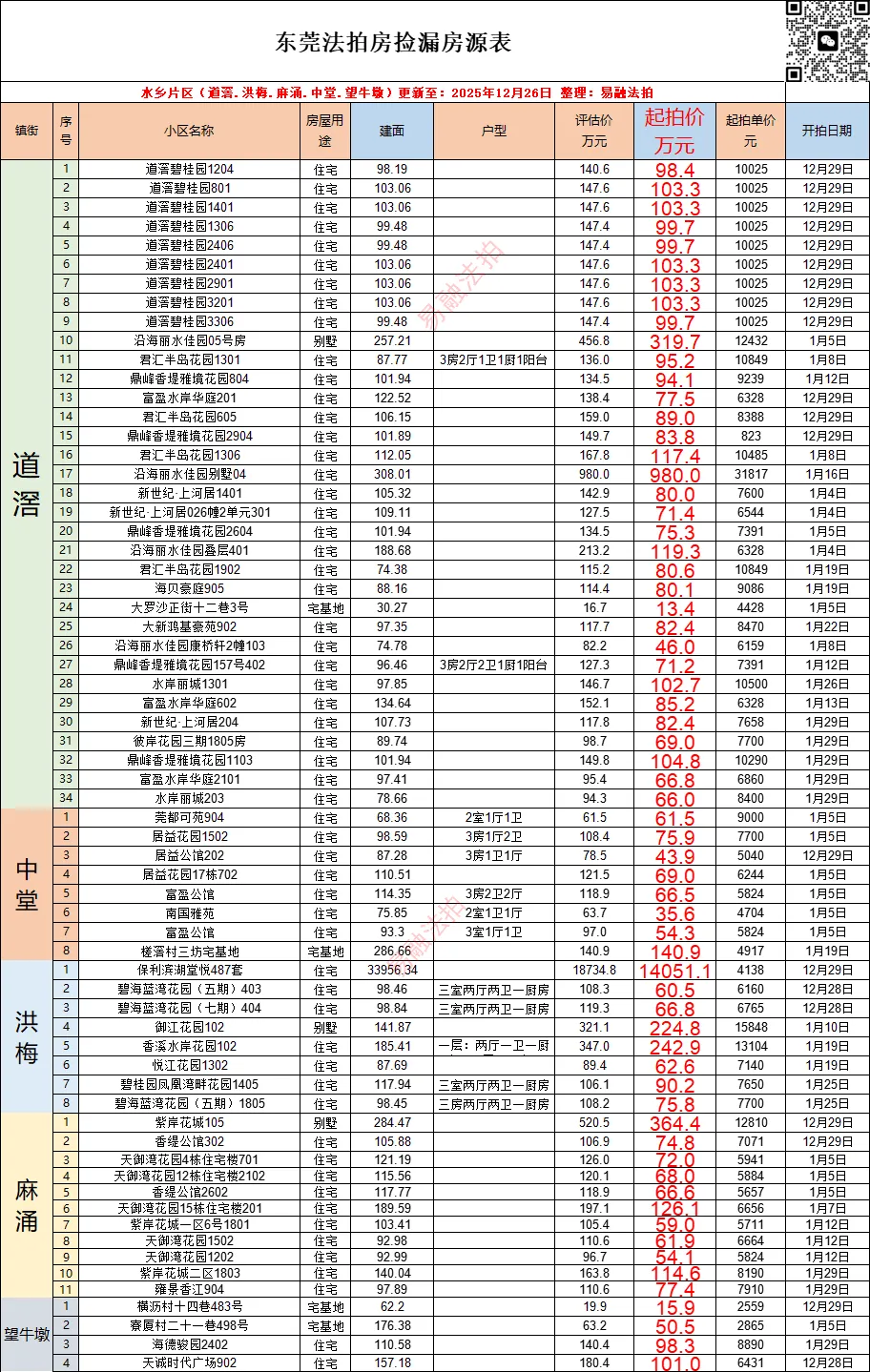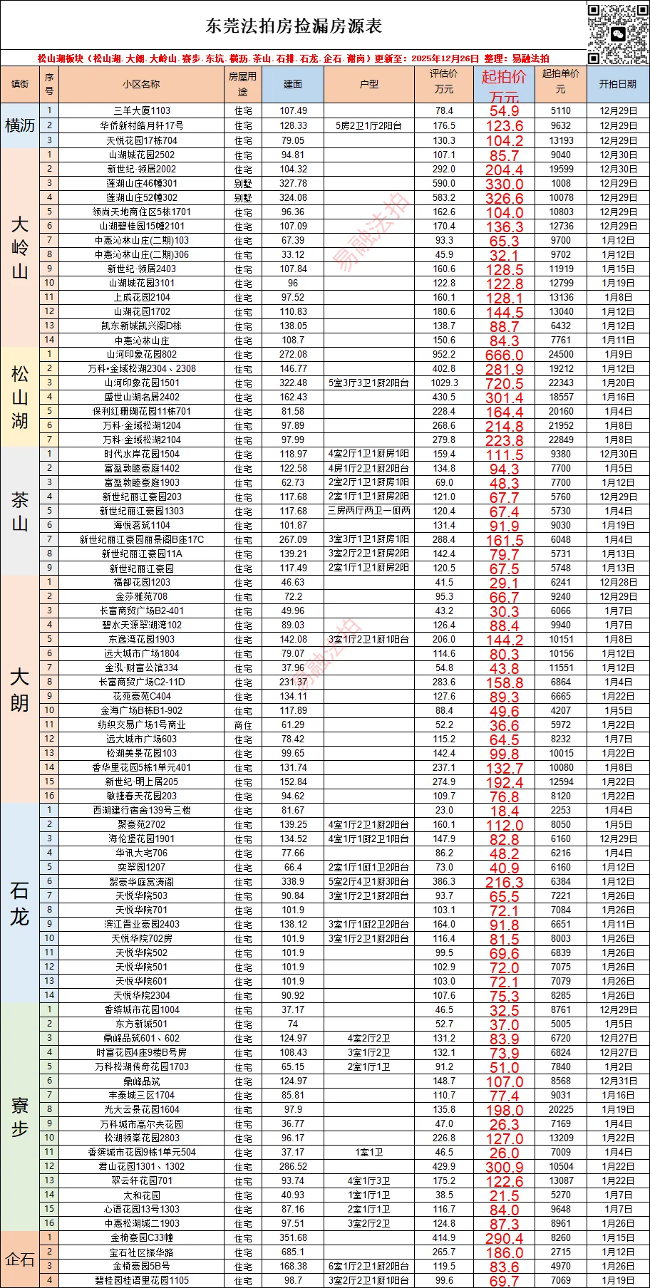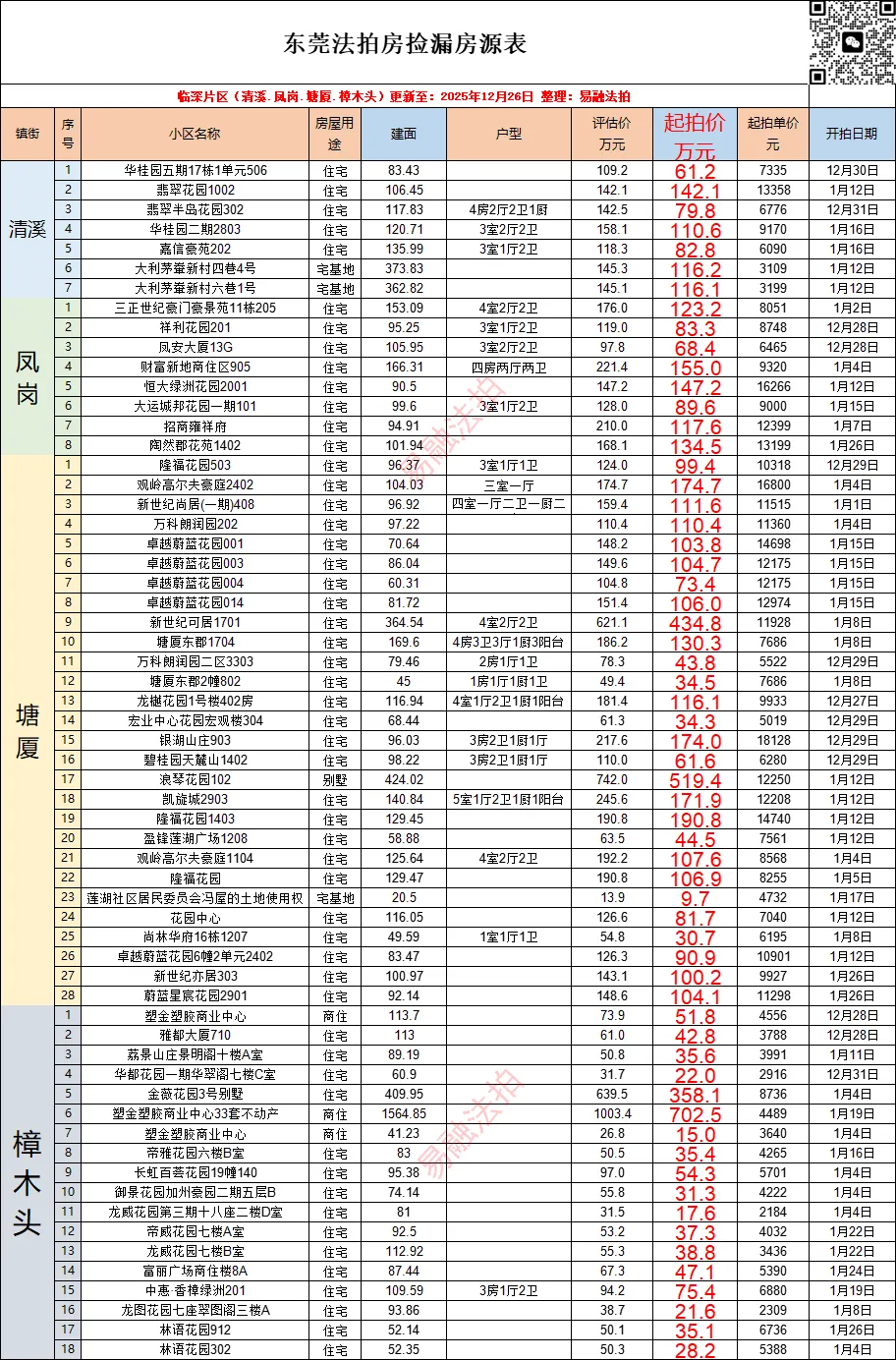 东莞12月法拍房源情况(住宅)