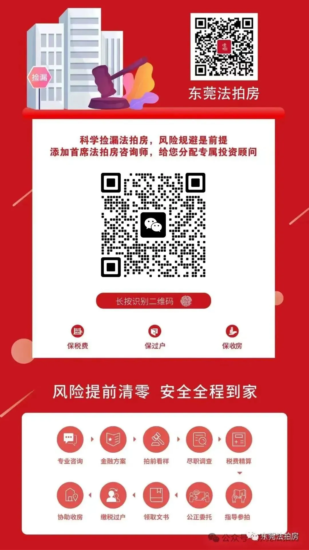 如果你想买房,我们每天都会更新东莞的法拍房源,有需要可以联系。如有资产方面的困惑,我们免费咨询,找到问题原因,帮你快速解决资金难题!如果房子断供或面临拍卖,提供以下服务:1、负债重组,延期保房,协助延期1-5年,可安心居住;3、如果是家庭唯一住房,申请安置费10至20万元。
