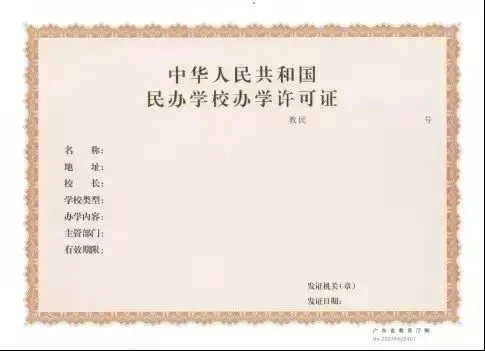 1.《中华人民共和国民办学校办学许可证》