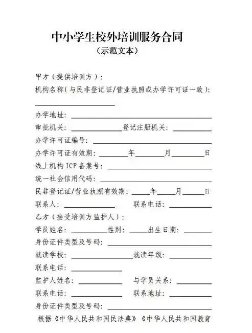 《中小学生校外培训服务合同(示范文本)》