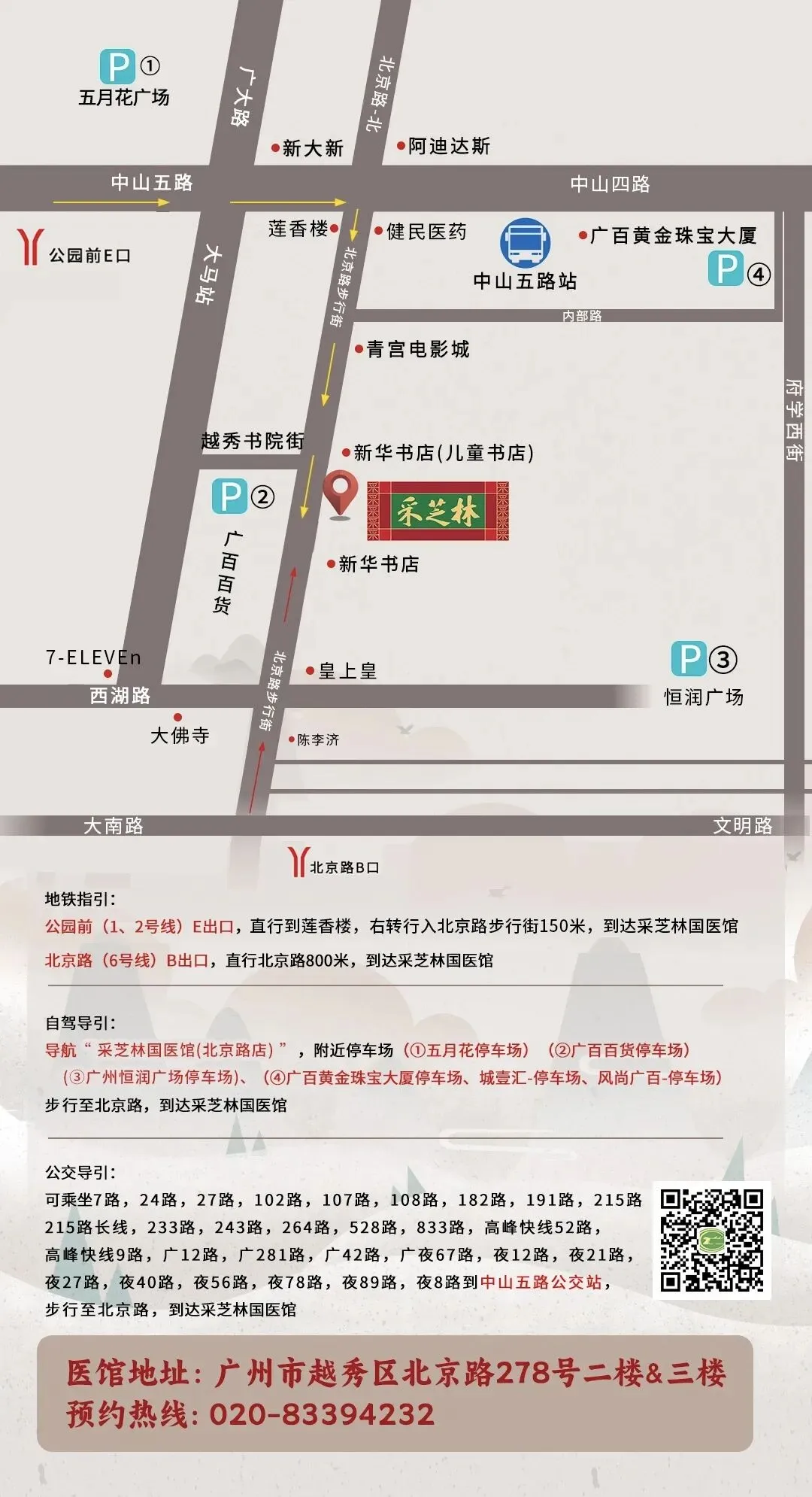 广州市越秀区北京路278号采芝林国医馆三楼